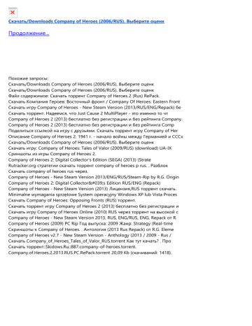Скачать/Downloads Company of Heroes (2006/RUS). Выберите оценк Продолжение... Похожие запросы: Скачать/Downloads Company of Heroes (2006/RUS). Выберите оценк Скачать/Downloads Company of Heroes (2006/RUS). Выберите оценк Файл содержимое: Скачать торрент Company of Heroes 2 (Rus) RePack. Скачать Компания Героев: Восточный фронт / Company Of Heroes: Eastern Front Скачать игру Company of Heroes - New Steam Version (2013/RUS/ENG/Repack) бе Скачать торрент. Надеемся, что Just Cause 2 MultiPlayer - это именно то чт Company of Heroes 2 (2013) бесплатно без регистрации и без рейтинга Company. Company of Heroes 2 (2013) бесплатно без регистрации и без рейтинга Comp Поделиться ссылкой на игру с друзьями. Скачать торрент игру Company of Her Описание Company of Heroes 2. 1941 г. - начало войны между Германией и СССх Скачать/Downloads Company of Heroes (2006/RUS). Выберите оценк Скачать игру: Company of Heroes: Tales of Valor (2009/RUS) (download) UA-IX Сриншоты из игры Company of Heroes 2. Company of Heroes 2: Digital Collector's Edition (SEGA) (2013) (Strate Rutracker.org стратегии скачать торрент company of heroes p rus. . Разблок Скачать company of heroes rus через. Company of Heroes - New Steam Version 2013/ENG/RUS/Steam-Rip by R.G. Origin Company of Heroes 2: Digital Collector's Edition RUS/ENG (Repack) Company of Heroes - New Steam Version (2013) Лицензия,RUS торрент скачать. Minimalne wymagania sprzętowe System operacyjny Windows XP lub Vista Proces Скачать Company of Heroes: Opposing Fronts (RUS) торрент. Скачать торрент игру Company of Heroes 2 (2013) бесплатно без регистрации и Скачать игру Company of Heroes Online (2010) RUS через торрент на высокой с Company of Heroes - New Steam Version 2013, RUS, ENG/RUS, ENG, Repack от R. Company of Heroes (2009) PC Rip Год выпуска: 2009 Жанр: Strategy (Real-time Скриншоты к Company of Heroes. . Антология (2013 Rus Repack) от R.G. Eleme Company of Heroes v2.7 - New Steam Version - Anthology (2013 / 2009 - Rus / Скачать Company_of_Heroes_Tales_of_Valor_RUS.torrent Как тут качать? . Про Скачать торрент::Skidows.Ru::887:company-of-heroes.torrent. Company.of.Heroes.2.2013.RUS.PC.RePack.torrent 20,09 Kb (cкачиваний: 1418).