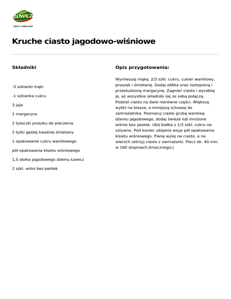 Przepis Łowicz: Kruche ciasto jagodowo-wiśniowe