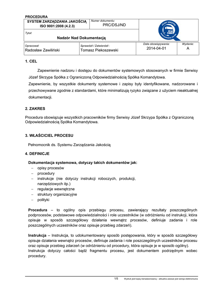 PRC/DSJ/ND Nadzór Nad Dokumentacją Radosław