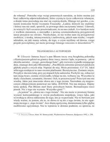 119 do własnej9. Potrzeba więc wciąż ponownych narodzin, za które można już brać całkowitą odpowiedzialność, które czynią to życie całkowicie własnym, a dzięki temu pozwalają mu stać się częścią dzieła. Dlatego też gorzko, a zarazem ironicznie brzmi wyznanie Foucaulta: „Ludzie, których nie znaliśmy i którzy nas nie znali, sprawili, że pewnego dnia zaczynamy istnieć. Udawali, że wierzyli i byli szczerze przeświadczeni, że na nas czekali. A w każdym razie z wielkim staraniem, a nierzadko z pewną ceremonialnością przygotowali nasze przyjście na «świat». Niesłychane, że nie wolno nam się przygotować osobiście, z troską, intensywnością i żarliwością, jakich nam trzeba, i współudziałem, na jaki mamy ochotę, do tego, o czym myślimy od dawna, czego projekt powzięliśmy już może pewnego letniego wieczora w dzieciństwie”10. TRANSGRESJA I AUTOPOIESIS W Ulissesie Jamesa Joyce’a pan Bloom toczy swą bezgłośną polemikę z Kartezjuszem gdzieś na granicy dnia i nocy, morza i lądu, za pomocą – jak to określa narrator – swego „powolnego buta”, gdy rozważa wypadki mijającego dnia, znanego dziś jako Bloomsday: „Pan Bloom ostrożnie poruszył patykiem głęboki piach u swych stóp. Napisać do niej. Może pozostanie. Co? JA. Jakiś włóczęga rozdepcze to rano swoimi platfusami. Bezużyteczne. Zostanie zmyte. Przypływ dociera tutaj, przy jej stopach była sadzawka. Pochylić się, zobaczyć tam moją twarz, ciemne zwierciadło, tchnąć na nie, wzburzy się. Wszystkie te skały z krechami, szramami, literami. Och, te przezroczyste! Poza tym one nie wiedzą. Jakie jest znaczenie słowa nie z tego świata. Nazwałam cię niegrzecznym chłopczykiem ponieważ nie lubię. JESTEM. Nie ma miejsca. Dajmy temu spokój. Pan Bloom starł litery powolnym butem. Beznadziejna rzecz piasek. Nic z tego nie wyrasta. Wszystko ginie”11. „Ja jestem” to „słowa nie z tego świata”. Nic nie może w prostszej formie wyrazić kartezjańskiego w swym pochodzeniu niepokoju, wręcz lęku, jaki wywołują te słowa odniesione do tego, kto je wypowiada. Nie to bowiem jest wtedy ważne, że jestem, ale to, że słowa te są nie z tego świata, że nie ogarniają niczego z „tego świata”, lecz drążą egotyczną, domniemaną tylko głębię osobliwości egzystencji. Nie to wprawia w drżenie podmiot, co sprawia, że 11 J. J o y c e, Ulisses, tłum. M. Słomczyński, Wydawnictwo Pomorze, Bydgoszcz 1992, s. 298. 120 Paweł BYTNIEWSKI egzystencja i myśl w „Ja” są tożsame, ale to, że tak określony byt podmiotu traci wszelkie koordynacje świata realnego. Foucault, intelektualista drugiej połowy dwudziestego wieku, czytelnik Joyce’a, kończy swą głośną książkę takimi oto słowami: „Człowiek jest wynalazkiem, którego historia – jak bez trudu wykazała archeologia naszej myśli – jest krótka. A koniec, być może, bliski. Gdyby ów układ znikł tak samo, jak się pojawił, gdyby wskutek jakiegoś wydarzenia, którego możemy co najwyżej przeczuwać możliwość, lecz którego formy i oznak jeszcze nie znamy, układ ten uległ zachwianiu, tak jak stało się u schyłku XVIII wieku z podłożem myśli klasycznej – wówczas możemy założyć, że człowiek zniknie, niczym oblicze z piasku na brzegu morza”12. Co innego jednak odkryć, że człowiek jest wynalazkiem, a co innego być nim dla siebie. Foucault jest odkrywcą czegoś więcej niż tylko kontyngencji podmiotowości, jej zapośredniczenia w kulturze, języku czy historii. Foucault odkrywa coś jeszcze: możliwość stwarzania siebie. „Myślę, że z teoretycznego punktu widzenia Sartre’owi udało się uniknąć idei jaźni jako czegoś, co jest nam dane, lecz poprzez moralne pojęcie autentyczności powraca on do idei, że musimy być sobą – być naprawdę własnym, prawdziwym ja. Myślę, że jedyną dającą się akceptować praktyczną konsekwencją tego, co powiedział Sartre, jest połączenie jego teoretycznego wglądu z praktyką twórczości – a nie autentyczności. Sądzę, że z idei, iż «ja» nie jest nam dane, wynika tylko jedna praktyczna konsekwencja: możemy stwarzać siebie jako dzieło sztuki. Interesujące okazuje się prześledzenie u Sartre’a jego analiz Baudelaire’a, Flauberta etc., w których odnosi on pracę kreacji do pewnej relacji wobec siebie – autora do siebie – która ma postać autentyczności lub nieautentyczności. Chciałbym powiedzieć coś wręcz przeciwnego: nie powinniśmy odnosić twórczej aktywności kogoś do pewnego rodzaju relacji, w jaką wchodzi on ze sobą, powinniśmy zaś odnosić pewną relację, w jakiej pozostaje ze sobą, do jego aktywności twórczej”13. Wejście w spór z Sartre’em to wejście w spór z kulturą intelektualną, z której myśl Foucaulta wyrasta i której zarazem się przeciwstawia. To kultura modernizmu, kultura autopojetycznej narracji nowoczesności. Mam tu na myśli refleks kulturowy, który nadaje kształt dyskursywny postawom afirmującym nowoczesność w tym zakresie, w jakim formują one stosunek człowieka do siebie samego. W epoce nowoczesnej postawy te znalazły wyraz w różno12 M. F o u c a u l t, Słowa i rzeczy. Archeologia nauk humanistycznych, tłum. T. Komendant i in., słowo/obraz terytoria, Gdańsk 2006, s. 347. 13 On the Genealogy of Ethics: An Overview of Work in Progress (wypowiedź Michela Foucaulta w rozmowie z Hubertem L. Dreyfusem i Paulem Rabinowem), w: H.L. Dreyfus, P. Rabinow, Michel Foucault: Beyond Structuralism and Hermeneutics, University of Chicago Press, Chicago 1983, s. 237. Michel Foucault. Autowizerunek filozofa 121 rodnych postaciach kultury intelektualnej – w filozofii, literaturze czy myśli politycznej. MODERNIZM: AUTENTYCZNOŚĆ I SAMOSPEŁNIENIE Czym zatem jest modernizm jako postawa? Postawę modernistyczną, jak się wydaje, wyrażają szczególnie trafnie słynne słowa Joyce’owskiego bohatera Stefana Dedalusa