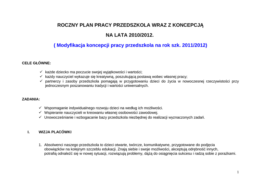 ROCZNY PLAN PRACY PRZEDSZKOLA WRAZ Z KONCEPCJĄ NA