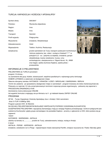 AP-50 - Turcja: Kapadocja i Kościoły Apokalipsy (tour z Antalyi) 15dni samolotem