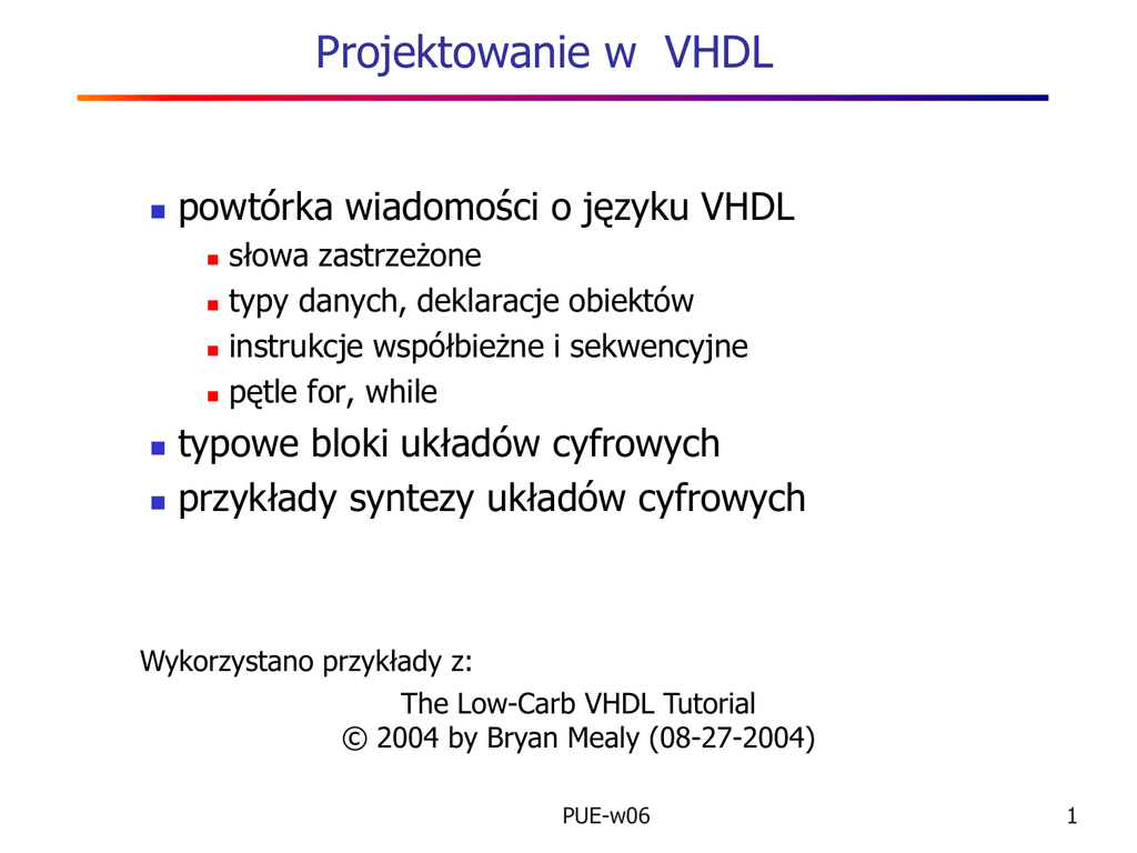 powtórka wiadomości o języku VHDL