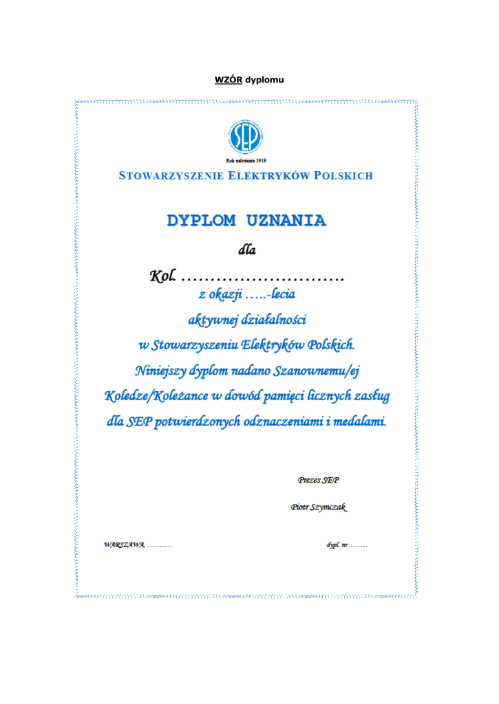 WZÓR dyplomu