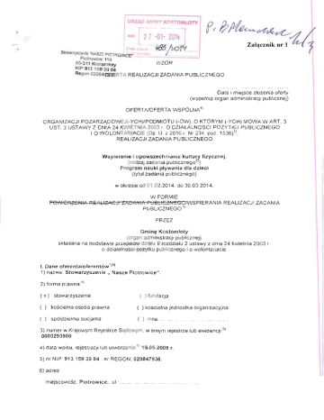 oferta złozona przez stowarzyszenie "nasze piotrowice"