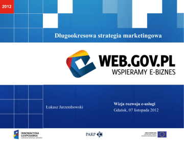 2012 Długookresowa strategia marketingowa Łukasz Jarzembowski Wizja rozwoju e-usługi Gdańsk, 07 listopada 2012 Wizja rozwoju e-usługi, Gdańsk, 07.11.2012 Długookresowa strategia marketingowa Jak długi okres przyjąć przy planowaniu strategii marketingowej e-usługi? Innowacyjność e-usługi Wyszukiwanie i poszerzanie niszy Szybki start - jak zacząć sprzedawać przed uruchomieniem e-usługi? (EDM) Edukowanie rynku i budowanie pozycji eksperta w branży Długoterminowe kanały sprzedaży Direct marketing, SEM / PPC, platformy sprzedażowe Content marketing E-mail marketing, blog, social media SEO PR, video... Wizja rozwoju e-usługi, Gdańsk, 07.11.2012 Ile trwa długi okres? ok. 15% firm IT upada w 1 roku działalności (dane GUS za lata 2010-2011) około 70% upada w ciągu pierwszych 5 lat działalności 2 lata to naprawdę dłuuuuuuuuuuugi okres ;-) Wizja rozwoju e-usługi, Gdańsk, 07.11.2012 Innowacyjność e-usługi Wizja rozwoju e-usługi, Gdańsk, 07.11.2012 Wyszukiwanie niszy Wizja rozwoju e-usługi, Gdańsk, 07.11.2012 Poszerzanie niszy Salon kosmetyczny Fryzjer Solarium Lekarski Przykład: Facebook Gabinet Dentystyczny Wizja rozwoju e-usługi, Gdańsk, 07.11.2012 Cel strategiczny Cel strategiczny = Przetrwanie + Rozwój Wizja rozwoju e-usługi, Gdańsk, 07.11.2012 Szybki start, czyli... Event-driven marketing Zdobądź partnerów JV Przygotuj wydarzenie Przygotuj promocję Podgrzej atmosferę Sprzedaj! ...i dosprzedaj Wizja rozwoju e-usługi, Gdańsk, 07.11.2012 Edukowanie rynku i zdobywanie pozycji eksperta Załóż bloga Przygotuj raport, napisz książkę lub ebooka Stwórz darmowy kurs Załóż profile w Social Media (FB, YT) Komentuj i działaj aktywnie na forach i w SM Pojawiaj się na konferencjach Publikuj w branżowych mediach Organizuj webinary i szkolenia Wizja rozwoju e-usługi, Gdańsk, 07.11.2012 Długoterminowe kanały sprzedaży Direct marketing • Korespondencja papierowa • Telemarketing • Przedstawiciele handlowi SEM / PPC / PPL • Google AdWords • Facebook Ads • Mniejsze sieci PPC (AdTaily, OnetKontekst, AdKontekst, BusinessClick) • Sieci afiliacyjne (Novem, Tradedoubler, Afilo, Propartner) Platformy sprzedażowe • Aukcje internetowe (Allegro, eBay) • Porównywarki cen (Nokaut, Ceneo) • Serwisy zakupów grupowych (Groupon, Gruper) Wizja rozwoju e-usługi, Gdańsk, 07.11.2012 Content marketing E-mail marketing • Buduj bazę potencjalnych klientów • Na stronie, blogu • W social media (fani) SEO • Pisz artykuły pod wyszukiwarkę i użytkowników • Systematycznie publikuj treści na swoim blogu • Publikuj ciekawe treści w serwisach branżowych i na blogach ekspertów Inne formy: • PR • Szkolenia video • Webinary • Screencasty Wizja rozwoju e-usługi, Gdańsk, 07.11.2012 Strategia marketingowa Scenariusz I • Wszystko zrobię sam • Zapał nie wystarczy ;-) • Doba ma tylko 24h Wizja rozwoju e-usługi, Gdańsk, 07.11.2012 Strategia marketingowa Scenariusz I • Wszystko zrobię sam • Zapał nie wystarczy ;-) • Doba ma tylko 24h Scenariusz II • Otwieranie kanałów „po kolei” • Specjalizacja w jednym (max. 2) kanałach • Gdy wyczerpiemy potencjał pierwszego kanału, otwieramy drugi... Wizja rozwoju e-usługi, Gdańsk, 07.11.2012 Strategia marketingowa Scenariusz I • Wszystko zrobię sam • Zapał nie wystarczy ;-) • Doba ma tylko 24h Scenariusz II • Otwieranie kanałów „po kolei” • Specjalizacja w jednym (max. 2) kanałach • Gdy wyczerpiemy potencjał pierwszego kanału, otwieramy drugi... Scenariusz III • Delegowanie • Znajdź agencję lub eksperta w każdym obszarze e-marketingu • Rozliczaj się FF lub za efekt • Kontroluj ROI Wizja rozwoju e-usługi, Gdańsk, 07.11.2012 Dziękuję serdecznie! [email protected]