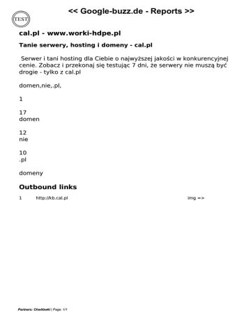 << Google-buzz.de - Reports >> cal.pl - www.worki-hdpe.pl Tanie serwery, hosting i domeny - cal.pl Serwer i tani hosting dla Ciebie o najwyższej jakości w konkurencyjnej cenie. Zobacz i przekonaj się testując 7 dni, że serwery nie muszą być drogie - tylko z cal.pl domen,nie,.pl, 1 17 domen 12 nie 10 .pl domeny Outbound links 1 http://kb.cal.pl Partners: Chwilówki | Page: 1/1 Powered by TCPDF (www.tcpdf.org) Powered by TCPDF (www.tcpdf.org) img =>