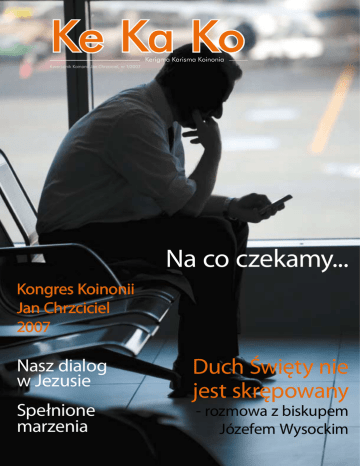 Ke Ka Ko Kerigma Karisma Koinonia Kwartalnik Koinonii Jan Chrzciciel, nr 1/2007 Na co czekamy... Kongres Koinonii Jan Chrzciciel 2007 Nasz dialog w Jezusie Spełnione marzenia Duch Święty nie jest skrępowany - rozmowa z biskupem Józefem Wysockim Ke Ka Ko od redakcji Kerigma Karisma Koinonia Kwartalnik Koinonii Jan Chrzciciel, nr 1/2007 Na co czekamy Czekaliśmy, czekaliśmy no i doczekaliśmy się. KeKaKo po raz pierwszy ukazuje się po polsku! Przekazujemy je Czytelnikom w adwentowo-świątecznym prezencie z nadzieją, że pomoże Wam czuć się jeszcze bardziej w sercu Koinonii i że będziecie zadowoleni z tego nowego środka zacieśniania naszych wspólnotowych więzi. Znajdziecie tu przekłady niektórych tekstów z włoskiej wersji KeKaKo oraz aktualności z Koinonii w Polsce i na świecie. Będziecie mogli przeczytać o tym, jak Koinonia Jan Chrzciciel ewangelizuje i czym żyje na co dzień. KeKaKo w wersji polskiej to kwartalnik, tak jak jego włoski odpowiednik. Jest adresowane do członków naszej wspólnoty i jej przyjaciół. Publikując pierwszy numer na kilka tygodni przed świętami Bożego Narodzenia, przypominamy sobie, że Słowo Boże przyszło na świat w postaci małego dziecka. Bezbronne i niepozorne. Dla jednych stało się znakiem nadziei, dla innych-powodem przerażenia. KeKaKo ma nadzieję przydać się wszystkim, którzy w tym Słowie upatrują właśnie nadziei. A nadzieja to oczekiwanie, to spodziewanie się czegoś... lub Kogoś. Życzymy Wam, aby nadchodzące Święta odnowiły w Was oczekiwanie i nadzieję na pełnię spotkania z Jezusem w Jego nadchodzącym Królestwie. spis treści 2 Od Redakcji Na co czekamy 3 Głos Generała Przyjaźń, radość, świadectwo 4/5 Z Polski 6/7 Ze Świata 8 Poznajemy Oazy Camparmo dzisiaj 9 Ludzie Koinonii Ola Lapeta 10/13 Nasze Korzenie 14/15 Mój dom będzie domem modlitwy Kontakt ze Wspólnotą RADZIC Oaza w Radzicu Nowy Radzic 9 21-077 Spiczyn Tel.: 081 757 76 60 Kom.: 0697 132 161 e-mail: [email protected] WROCŁAW Biuro Koinonii Jan Chrzciciel ul. Św. Antoniego 35/25 50-073 Wrocław Tel.: 071 796 47 04, 71 796 47 05 Kom. 0601 15 12 62 e-mail: [email protected] GDYNIA Zenon Kufel ul. Św. Józefa 5 84-207 Bojano Tel.: 0601 61 30 88 e-mail: [email protected] TARNOBRZEG Beata i Andrzej Wójtowiczowie Krajowi Koordynatorzy Szkoły Nowej Ewangelizacji e-mail: [email protected] Redakcja Adres redakcji: KeKaKo Kerigma Karisma Koinonia, Kwartalnik Koinonii Jan Chrzciciel, Nowy Radzic 9, 21-077 Spiczyn, tel. 0817577660, e-mail: [email protected], http://www.kekako.pl Redaktor naczelny: Robert Hetzyg Redaktor programowy: Iwona Sułek Redakcja: Anna Sawicka, Izabela Łukaszewicz, Joanna Piątkowska Korekta: Izabela Łukaszewicz Skład i łamanie: Łukasz Abramek Druk: Oficyna poligraficzna Apla Spółka Jawna, ul. Sandomierska 89, 25-324 Kielce Historia Camparmo Relacja z Kongresu Koinonii 2007 16/17 Rozmowa Ke Ka Ko Duch Święty nie jest skrępowany 18/19 Chrześcijanie w Izraelu Pierwsze kroki ku Jerozolimie 20 Strona Biblijna Droga do Jezusa 21 Nasze Powołanie List Pasterza Generalnego na Adwent 22/23 Rodzina Małżeńskie Ke Ka Ko Nasz Dialog w Jezusie 24/25 Życie dla Królestwa Dziewictwo dla Królestwa Niebieskiego Spełnione Marzenia 26/27 Strefa młodych 28 Z Oazy głos generała radość przyjaźń świadectwo Może wydam się kiepskim patriotą, nawet jeśli nie jestem Polakiem, a tylko pełnym podziwu obserwatorem tego, co Pan czyni z Koinonią na polskiej ziemi. Tak więc jako porządny „generał” mogę jedynie dostrzec łaskę Boga i zachęcić, abyście nie ustawali w drodze, w którą wyruszyliście dawno temu. Był rok 1992 kiedy Koinonia stawiała pierwsze kroki w Polsce, od tamtego czasu minęło 15 lat intensywnej pracy. Pan nam błogosławił, ale wciąż jesteśmy dalecy od tego czego się od nas oczekuje. Koinonia Jan Chrzciciel jest małym narzędziem w rękach Ducha, którego używa On wedle swojego planu zbawienia: umocnić Królestwo Boże i przygotować drogę Panu. Naszą główną troską jest to, aby podobać się Panu i żyć według charyzmatu, którym nas obdarzył. Dlatego przyjaźń, radość i świadectwo to nasze trzy przykazania! Przyjaźń: być wspólnotą przyjaciół, którzy potrafią być wdzięczni za przyjęcie, jakiego doświadczyli i umieją oddać życie za braci. Radość: radość zaraźliwa, entuzjastyczna, widoczna, typowa dla kogoś, kto jest pełen Ducha i doświadczył zbawienia. Świadectwo: głoszenie tego, co Jezus uczynił w nas i co chce uczynić we wszystkich, którzy otwierają serca na wołanie Boga. To właśnie jest nasza tożsamość, to właśnie musimy robić, tego Kościół od nas oczekuje. A cóż to ma wspólnego z gazetą KeKaKo? Jest to po prostu nasze pismo, twoja gazeta, twoja wizytówka, która słowem drukowanym ogłasza dar Boga ofiarowany Koinonii, którym ona chce się dzielić. KeKaKo będzie głosem Jana Chrzciciela, który przemówi po polsku, będzie twoim głosem! „Podnieś głos, nie bój się, powiedz...” (Iz 40,9) o. Alvaro Grammatica z Polski Pierwsza Polska Oaza Rada Pasterzy Koinonii Jan Chrzciciel powołała pierwszą polską Oazę z siedzibą w Nowym Radzicu. Po ośmiu latach od przyjazdu do Polski pierwszych braci i sióstr celibatariuszy i po pięciu latach od osiedlenia się wspólnoty wewnętrznej we własnym domu w Nowym Radzicu powstała tam siedziba Oazy jednoczącej wspólnoty dotychczasowego regionu tarnobrzeskolubelskiego. Pełniącym obowiązki pasterza została Iwona Sułek. Pasterze postanowili postawić kolejny krok na drodze pełnego zakorzenienia Koinonii w naszym kraju. Skorzystają na tym zarówno wspólnoty, dla których Oaza z jej pasterzem staną się oparciem, jak i wszystkie wspólnoty w Polsce, które dzięki pojawieniu się pierwszej Oazy śmielej mogą myśleć o powstaniu wspólnot życia konsekrowanego w ich własnych regionach. Wiadomości z domu Oazy w Radzicu publikujemy na str. 28. Zmar