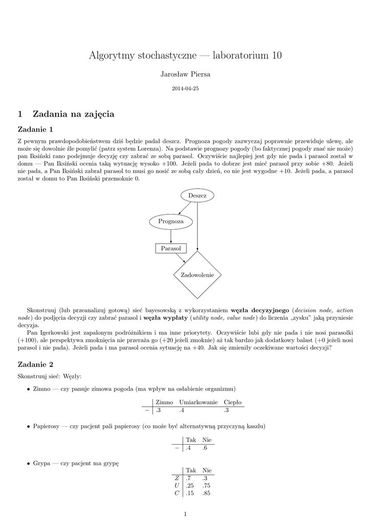 node) do podjęcia decyzji czy zabrać parasol i węzła wypłaty (utility node, value node) do liczenia „zysku” jaką przyniesie