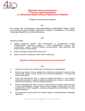 Regulamin klas mundurowych IV Liceum Ogólnokształcące im