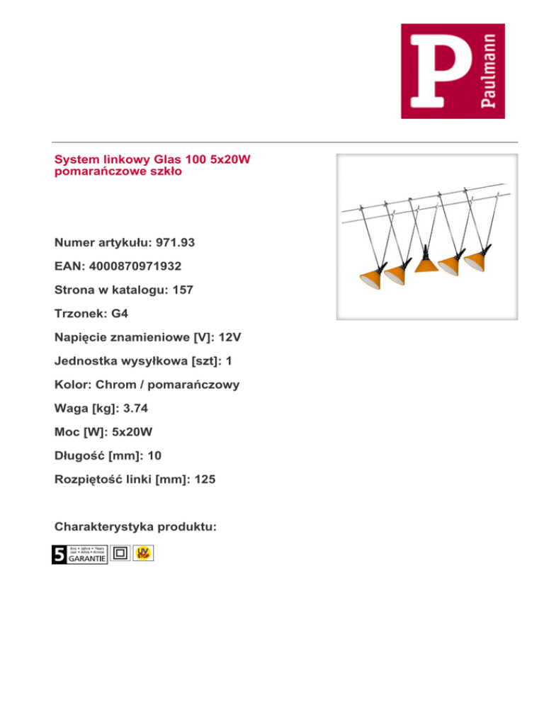 System linkowy Glas 100 5x20W pomarańczowe szkło Numer artykułu