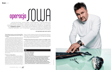 OUI CHEF operacja SOWA LUBI SIĘ SPOTKAĆ, WYPIĆ KAWĘ, POROZMAWIAĆ. DOCENIA WARTOŚĆ DRUGIEGO CZŁOWIEKA I SZANUJE JEGO CZAS. NIE LUBI LUDZI, KTÓRZY DZWONIĄ TYLKO WTEDY, GDY CZEGOŚ OD NIEGO POTRZEBUJĄ. NAJWIĘKSZA SIŁA ROBERTA SOWY? COKOLWIEK NEGATYWNEGO USŁYSZY, NAKRĘCA SIĘ JESZCZE BARDZIEJ. CZY TO WŁAŚNIE KLUCZ DO SUKCESU NAJWIĘKSZEGO MISTRZA KULINARNEGO W POLSCE? Autor: Agata Godlewska, zdjęcia: Zosia Zija i Jacek Pióro waliśmy z 2-3 torebek, a Japończycy, Amerykanie i Niemcy poprzyjeżdżali wielkimi tirami, podobnymi do tych, jakie ja mam dzisiaj na trasach kulinarnych. Kurt powiedział mi wtedy: – Robert, to jest prawdziwy świat kulinarny, to jest wielki świat. Zanim Polska w nim się znajdzie, jeszcze troszeczkę to potrwa. Ale jednak przyszło Ci obserwować moment, w którym i u nas nastąpiła ta zmiana. Cieszę się, że bardzo wielu szefów kuchni twierdzi, że zmiany nastąpiły m.in. dzięki pracy Roberta Sowy i Kurta Schellera; że wszystko, co robiliśmy przez lata, wpłynęło na to, że dzisiaj, gdy zaglądam do prasy branżowej, ale też popularnej, na co drugiej stronie widzę kucharzy. Pokazaliśmy, że wielkie firmy czy koncerny powinny mieć doradców kulinarnych i nie jest to żaden wymysł marketingowy, po prostu tak funkcjonuje cały świat. Jeśli w latach 70. w każdym kraju w Europie było po 10-15 telewizyjnych programów kulinarnych, to jeśli teraz są one w Polsce, to żadnej Ameryki nie odkrywamy. Poczułeś to na własnej skórze? Oczywiście, że tak! Gdy miałem praktyki, byliśmy postrzegani jak inna kasta, a dzisiaj szefom kuchni ludzie się kłaniają. Wszystko to zrozumiałem w 1995 r., kiedy po raz pierwszy miałem przyjemność być w jury u Paula Bocuse’a. Pojechałem tam z Kurtem Schellerem, Pawłem Oszczykiem i Filipem Szmidtem. Czułem się jak krasnoludek wśród zagranicznych gwiazd, bo nie wierzyłem w to, co działo się wokół szefów i kucharzy, w sposób, jaki są goszczeni, witani, jaki szacunek ma do nich branża! My się tam rozpako- FOOD SERVICE 6/2010 – 1/2011 16 BIO Imię i nazwisko: Robert Sowa Data urodzenia: 26.10.1966 r. Miejsce urodzenia: Kraków Stanowisko: mistrz kulinarny Najważniejsze wyróżnienia: statuetka za promowanie kuchni polskiej na świecie (Dni Polskie w Berlinie, 2003 r.), tytuł honorowy przyznany przez Kulinarny Instytut Francuski, nagroda Oskar Kulinarny 2004 w kategorii osobowość kulinarna roku oraz Oskar Kulinarny 2006 w kategorii książka, tytuł Gentleman Roku 2008 przyznawanym przez miesięcznik „Gentleman”, złoty medal Polskiego Klubu Biznesu 2009 r., tytuł Członka Akademii Polskiego Sukcesu oraz Luksusowa Marka Gentlemana za popularyzację sztuki kulinarnej w Polsce, Hermes „Poradnika Restauratora” w kategorii osobowość gastronomii 2010 r. Zdjęcie: Zosia Zija i Jacek Pióro Twoja kulinarna kariera trwa już od przeszło kilkunastu lat. Gdy rzucę hasło: lata 70. i 80. w Polsce, to co widzisz? Lata 70. wspominam przez mgłę, bliższe są mi 80. i 90. Chodziło się wówczas do restauracji, żeby zjeść, dziś natomiast odwiedza się lokale, aby smakować. To pierwsza różnica. Druga dotyczy szefów i dostępności produktów – teraz każdy może zamówić do restauracji dosłownie wszystko. Oczywiście istnieją bariery finansowe i wątpliwości, czy to się aby na pewno sprzeda. Kiedyś przerabiano produkty, które udało się kupić. Najczęściej był to królik, kurczak, czasami indyk. Pojawiała się konina, która wówczas nie była żadnym rarytasem. Więc były to zupełnie inne czasy zarówno dla kucharzy, jak i kelnerów – właściwie nie ma co porównywać. Nie oszukujmy się, ale w latach 70. i 80. szef kuchni to w potocznym myśleniu lubiący wypić, złodziej, anonimowy człowiek, któremu się zupełnie w życiu nie udało. Tak byli postrzegani wszyscy, którzy szli do szkoły gastronomicznej. OUI CHEF OUI CHEF Kiedy media zaczęły interesować się szefami kuchni, okazało się, że dla wielu z Was było to jak woda na młyn – bardzo dobrze odnaleźliście się w tym świecie. Faktycznie, Fundacja została w ostatnim czasie bardzo zauważona przez media, ale przecież nie dlatego, że jest fundacją, lecz dlatego, że skupia bardzo ciekawych ludzi, z którymi można porozmawiać, którzy mogą coś ciekawego pokazać. Połączenie pracy społecznej, jaką prowadzi Fundacja, oraz medialności miało duży wpływ na to, w którym miejscu jestem dzisiaj ja, jak również polska gastronomia. Takie osoby, jak: Kurt Scheller, Karol Okrasa, Pascal Brodnicki i wielu innych, którzy gotują w programach „Kawa czy herbata”, „Pytanie na śniadanie” czy „Dzień dobry TVN”, przyciągają przed telewizory miliony ludzi. Wszyscy oni oglądają kucharzy, szefów kuchni i myślę, że to bardzo ważne dla branży oraz młodych ludzi. SKŁADNIKI DLA 4 OSÓB: Tatar z łososia z żurawiną 1 czerwone jabłko, 50 g świeżej żurawiny amerykańskiej, 5 łyżek nektaru żurawinowego, 1 łyżeczka syropu klonowego, 150 g wędzonego łososia (w całości), 150 g marynowanego łososia (w całości), 1 łyżeczka oliwy, z oliwek, świeżo mielony czerwony pieprz, 1 pęczek koperku Są osoby, którym ta medialność się nie podoba? Wiem, że wiele osób kręci nosem. Odpowiem w ten sposób. Kiedyś jakiś kucharz spytał mnie: „No tak, panie Robercie, ale jak pan znajduje czas, żeby w tych mediach być, ja to bym tak nie chciał, trzeba pilnować kuchni itd.”. Odpowiedziałem: „A ile stacji telewizyjnych do ciebie zadzwoniło?”. „Żadna”. „No, widzisz. A ile firm do ciebie zadzwoniło, żebyś z nimi współpracował?”. „No, żadna”. Myślę więc, że każdy człowiek ma w sobie to coś, co go predestynuje do określonego działania, i dlatego Magda Gessler prowadzi „Kuchenne rewolucje”, a Adam Gessler to ten, któremu udało się w biznesie. Patrzę na to wszystko globalnie, nie rozdrabniam się. Zawód kucharza je