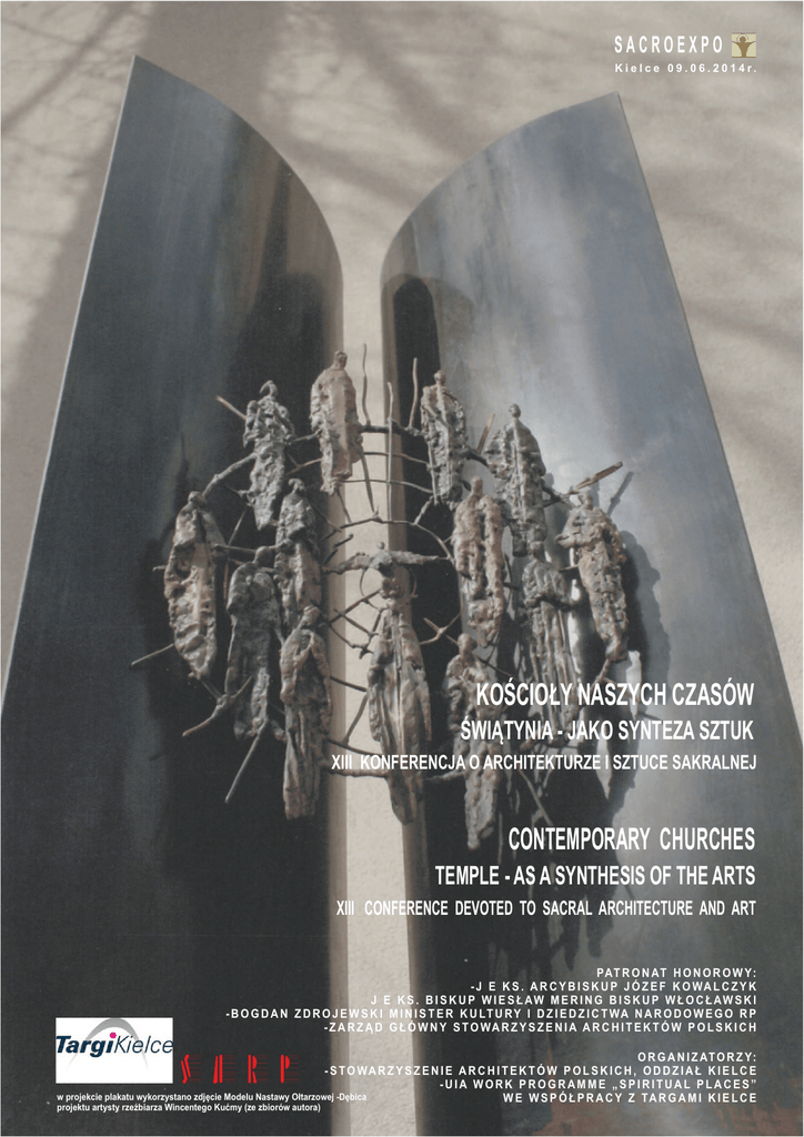 SACROEXPO K i e l c e 0 9 . 0 6 . 2 0 1 4 r. KOŚCIOŁY NASZYCH CZASÓW ŚWIĄTYNIA - JAKO SYNTEZA SZTUK XIII KONFERENCJA O ARCHITEKTURZE I SZTUCE SAKRALNEJ CONTEMPORARY CHURCHES TEMPLE - AS A SYNTHESIS OF THE ARTS XIII CONFERENCE DEVOTED TO SACRAL ARCHITECTURE AND ART PAT R O N AT H O N O R O W Y: - J E K S . A R C Y B I S K U P J Ó Z E F K O WA L C Z Y K J E K S . B I S K U P W I E S Ł AW M E R I N G B I S K U P W Ł O C Ł AW S K I - B O G D A N Z D R O J E W S K I M I N I S T E R K U LT U R Y I D Z I E D Z I C T WA N A R O D O W E G O R P - Z A R Z Ą D G Ł Ó W N Y S T O WA R Z Y S Z E N I A A R C H I T E K T Ó W P O L S K I C H O R G A N I Z AT O R Z Y: - S T O WA R Z Y S Z E N I E A R C H I T E K T Ó W P O L S K I C H , O D D Z I A Ł K I E L C E -UIA WORK PROGRAMME „SPIRITUAL PLACES” w projekcie plakatu wykorzystano zdjęcie Modelu Nastawy Ołtarzowej -Dębica W E W S P Ó Ł P R A C Y Z TA R G A M I K I E L C E projektu artysty rzeźbiarza Wincentego Kućmy (ze zbiorów autora) SACROEXPO 2014 Kielce 13.05.2014r. ZAPROSZENIE STOWARZYSZENIE ARCHITEKTÓW POLSKICH Oddział Kielce we współpracy z Targami Kielce od 13 lat jest organizatorem corocznych konferencji poświęconych Architekturze i Sztuce Sakralnej – SACROEXPO – KOŚCIOŁY NASZYCH CZASÓW, towarzyszących Międzynarodowej Wystawie Budownictwa i Wyposażenia Kościołów, Sztuki Sakralnej i Dewocjonaliów. W roku 2014 do współpracy w organizacji konferencji włączyła się również UIA Work Programme „Spiritual Places”. Gościem honorowym tegorocznej konferencji będzie Mario Botta, szwajcarski architekt, który zostanie odznaczony medalem Papieskiej Rady ds. Kultury „Per Artem ad Deum” …przez sztukę do Boga… Tytuł tegorocznej XIII konferencji to Świątynia - jako synteza sztuk. „Niema sztuka umie mówić” Św. Grzegorz z Nyssy Biblia rozpoczyna się aktem stworzenia świata – „nieba i ziemi”. Kończy się opisem „nowej ziemi i nowego nieba”. Te dwa stany historii świata symbolicznie wiązane są z „Rajem”, jego stanem pierwotnym, i z „Nowym Jeruzalem”, ostateczną wizją przemiany w ostatnim dniu jego istnienia. Raj to miejsce do którego Bóg wprowadził człowieka, który miał być panem stworzenia, kapłanem rajskiego Kościoła. Człowiek tego planu jednak nie wykonał. Po wypędzeniu z Raju: „Kain zbudował miasto (…)” (I Ks. Mojż. 4, 17). Jego budowanie trwa do dziś, aż do czasów gdy powstanie miasta doskonałego, które Św. Jan Teolog opisuje jako: „miasto święte – Nowe Jeruzalem, zstępujące z nieba od Boga, przystrojone jak oblubienica” (Apok. Św. Jana 21, 2), dodając „ale świątyni w nim nie widziałem, bo jego świątynią jest Pan Bóg wszechmogący oraz Baranek” (Apok. Św. Jana 21, 21-22). To skrót historii budowania miasta. To także skrócona historia budowania świątyni. Proroczo zapowiedzianym miastem, w jego symbolicznej wizji, jest do dziś świątynia. To ona, pomiędzy początkiem dziejów, a ich kresem, jest miejscem życia człowieka religijnego. Jest Nowym Jeruzalem homo religiosus, w którym Bóg będzie „wszystkim we wszystkich i we wszystkim”. W niej dokonuje się sakralne spełnienie. I chociaż konieczność jej budowania kiedyś przeminie, dziś jest ona niezbędna – i jako miejsce zgromadzenia i jako obraz Niebiańskiego Nowego Jeruzalem. Cała sztuka wciąż pracuje dla stworzenia tego idealnego obrazu, innego, przyszłego, przemienionego już świata w świątyni. To głównie świątynia – poprzez sztukę liturgii, architektury, ikony, rzeźby, muzyki, śpiewu, słowa, gestu, ruchu, liturgicznych szat i przyborów czy sztukę światła, ognia i kadzidlanego dymu – przedstawia nam ten świat, który ma nadejść w dniach ostatecznych. W syntezie sztuk. Pokazywanie świata w jego theosis, w przemianie w rzeczywistość zbawioną było i jest podstawową funkcją wszystkich sztuk. Tak było dawniej. Czy tak jest też i dziś? — Czy taka synteza jest dziś jeszcze możliwa? — Czy jest przekazem „żywej” Tradycji Kościoła i jego estetycznego i religijnego doświadczenia sacrum? — Czy dziś nam coś ona o tym świecie mówi? — Czy boskość i świętość są w niej jeszcze obecne? — W jaki sposób się to dokonuje? Stawiając pytanie o sens istnienia człowieka, pytamy dziś również o sens jego twórczości poprzez sztukę, twórczości rozumianej jako kontynuacji boskiego dzieła stworzenia. Czy sztuka ta jest dziś sztuką teurgiczną, sztuką, w której neutralizuje się granica pomiędzy sacrum i profanum, ujawniając prefigurowany obraz miasta – Niebiańskiego Jeruzalem? Czy jest to obraz możliwy dziś do przedstawienia w murach świątyni – jako synteza wszystkich sztuk? Termin Konferencji poniedziałek 9 czerwca 2014r. godz. 10.00-18.00 (przewidywane wystąpienie gościa honorowego orientacyjnie godz. 10.00-11.15) Adres – Targi Kielce ul. Zakładowa 1. Konferencja otwarta dla wszystkich gości, wstęp wolny, rejestracja od godz.9.00. Przewiduje się publikację wystąpień w postaci zbioru referatów. Szczegółowy program konferencji zostanie dosłany pocztą mailową oraz będzie umieszczony na stronie SARP o. Kielce od dnia 25 maja 2014r. w imieniu organizatorów arch. Regina Kozakiewicz-Opałka tel.502599015 email: [email protected]