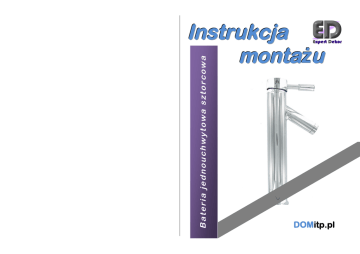 Bateria jednouchwytowa sztorcowa Instrukcja montażu DOMitp.pl INSTRUKCJA MONTAŻU BATERII SERJA: KADAYA 2 3 4 5 6 7 UWAGA: Przed montażem przepłukać instalację hydrauliczną. W przeciwnym razie zanieczyszczenia mogą uszkodzić głowice lub zatkać baterię. Instalacja musi posiadać filtry wody. Zgodnie z normami ciepła woda jest zawsze przyłączana po lewej stronie baterii/korpusu mieszacza. MONTAŻ BATERII STOJĄCYCH 1 – OTWOROWYCH 1. Zamknąć zawory odcinające dopływ ciepłej i zimnej wody. 2. Wkręcić znajdujące się w opakowaniu wężyki (rurki giętkie) w korpus baterii. 3. Wkręcić śruby z gwintem dwustronnym w korpus baterii. 4. Ułożyć oring - uszczelkę gumową w korpusie baterii - montowany pomiędzy baterię a miskę umywalki/zlewozmywaka/blatu. Niektóre baterie posiadają dodatkową podkładkę pod korpus. 5. Ustawić baterię w otworze umywalki/zlewozmywaka. 6. Założyć podkładkę gumową i pierścień metalowy na śruby mocujące. 7. Nakręcić nakrętki na śruby mocujące - bateria nie powinna obracać się w otworze. 8. Podłączyć wężyki do zaworków zasilających. 9. Otworzyć zawory odcinające. 10. Sprawdzić działanie baterii. KONSERWACJA BATERII Powierzchnie baterii są wrażliwe na niektóre żrące środki czyszczące, które mogą być stosowane tylko na odpowiedzialność użytkownika. Polecamy oczyszczanie ich tylko wodą mydlaną i osuszanie wełnianą ściereczką. Do usuwania kamienia zalecamy używanie octu rozcieńczonego z wodą w proporcjach 1:1. Zaleca się przełączniki prysznicowe i perlatory co pewien czas wykąpać w occie na kilka godzin i wypłukać w ciepłej wodzie. Zapobiegnie to zbyt szybkiemu zużyciu się tych elementów. Firma Expert Dekor nie bierze odpowiedzialności za użycie innych środków niż ocet. DOMitp.pl 8
