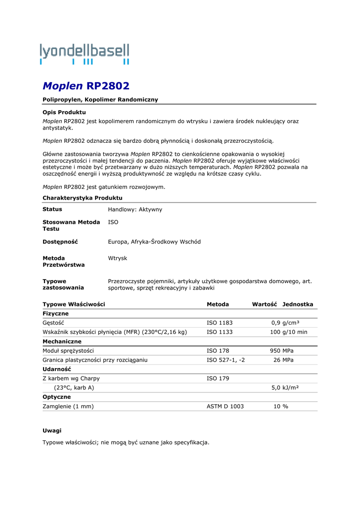 Moplen RP2802 TDS 201410 PL