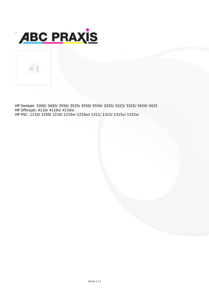 HP Deskjet: 3300/ 3400/ 3550/ 3535/ 3550/ 5550/ 3320/ 3323/ 3325/ 3420/ 3425 HP Officejet: 4110/ 4110v/ 4110xi HP PSC: 1110/ 1209/ 1210/ 1210v/ 1210xi/ 1311/ 1315/ 1315v/ 1315xi Strona 1 z 1
