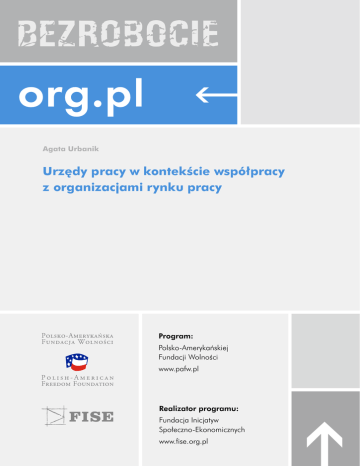 Agata Urbanik Urzędy pracy w kontekście współpracy z organizacjami rynku pracy Program: Polsko-Amerykańskiej Fundacji Wolności www.pafw.pl Realizator programu: Fundacja Inicjatyw Społeczno-Ekonomicznych www.fise.org.pl Fundacja Inicjatyw Społeczno-Ekonomicznych Warszawa, listopad 2008 Projekt graficzny: Frycz | Wicha Skład graficzny: Mirosław Piekutowski Opracowanie powstało na podstawie raportu Ministerstwa Pracy i Polityki Społecznej Analiza funkcjonowania urzędów pracy po ich włączeniu do administracji samorządowej. Wszystkie prawa zastrzeżone. Przedruk i reprodukcja w jakiejkolwiek postaci całości lub części opracowania bez pisemnej zgody Fundacji Inicjatyw Społeczno-Ekonomicznych są zabronione. Agata Urbanik Urzędy pracy w kontekście współpracy z organizacjami rynku pracy Warszawa 2008 a Spis treści Zasady współpracy urzędów pracy z NGO 4 Miejsce urzędów pracy w społeczności 5 Co stoi na przeszkodzie współpracy? 5 Kompetencje NGO 6 Wnioski 6 Bibliografia 7 4 Niewiele osób pamięta, że do największych zmian wprowadzonych przez wielką reformę administracyjną z 1998 roku należą nie tylko nowy podział administracyjny kraju i decentralizacją rządzenia związana ze zwiększeniem kompetencji samorządów. Została wtedy dokonana także fundamentalna zmiana na rynku pracy – urzędy pracy, które do tej pory podlegały administracji rządowej, przekazane zostały kompetencjom samorządów. Kolejnym krokiem, który zreformował publiczne służby zatrudnienia była Ustawa o promocji zatrudnienia i instytucjach rynku pracy z 20 kwietnia 2004 r. Z punktu widzenia organizacji pozarządowych był to dokument kluczowy. Dokument ten określa NGO jako pełnoprawnych parterów dla urzędów i władz, które współtworzą lokalną politykę rynku pracy. Można by więc założyć, że rok 2004 był przełomowy dla współpracy strony publicznej i społecznej w ramach działań na rzecz rynku pracy. Czy tak jest w istocie? powiatu, nie samych urzędów pracy. Dla przykładu – to starosta powiatu akceptuje kandydaturę NGO do powiatowej rady zatrudnienia, to z jego inicjatywy powstają partnerstwa opisane w ustawie oraz projekty lokalne. To również w strategii opracowywanej przez starostwo powiatowe może znaleźć się zapis umożliwiający współpracę z organizacjami pozarządowymi w celu rozwiązania problemów lokalnego rynku pracy. Także konkursy, w wyniku których przyznawane są dotacje na wsparcie działań prowadzonych przez organizacje lub realizacje powierzonych zadań (choć zarząd powiatu może powierzyć przeprowadzenie procedur konkursowych PUP-owi) są rozpisywane przez władze powiatowe.3 Warto tu napisać, że organizacje pozarządowe, które statutowo zajmują się problematyką rynku pracy, są wymienione w Ustawie o promocji zatrudnienia... wśród instytucji rynku pracy. Zgodnie z zapisami, starosta (lub wojewoda) możne im z tego tytułu zlecać usługi rynku pracy, czyli pośrednictwo pracy, poradnictwo zawodowe i informację zawodową, pomoc w aktywnym poszukiwaniu pracy oraz organizację szkoleń.4 Atutem organizacji pozarządowych w pracy z klientem może być indywidualne podejście do jego potrzeb, relatywnie niski poziom zbiurokratyzowania, łatwość w wykorzystywaniu innowacyjnych rozwiązań oraz silne zakorzenienie w społeczności lokalnej. Są to cechy nie do przecenienia, jeśli chodzi o skuteczne włączanie osób szczególnie zagrożonych długotrwałym bezrobociem na rynek pracy. Dziesięciolecie reformy administracyjnej oraz czterolecie Ustawy o promocji zatrudnienia i instytucjach rynku pracy było pretekstem dla Ministerstwa Pracy i Polityki Społecznej do przeprowadzenia kompleksowych badań publicznych służb zatrudnienia. Wyniki prac zostały opublikowane w raporcie pt. Analiza funkcjonowania urzędów pracy po włączeniu ich do administracji samorządowej1. Szczególnie ciekawa może być lektura tego opracowania pod kątem relacji między urzędami pracy a organizacjami rynku pracy, zwłaszcza w świetle regulacji wprowadzonych przez Ustawę o promocji zatrudnienia... Zanim jednak przedstawię wyniki badań, warto przypomnieć, na jakich podstawach może kształtować się współpraca między publicznymi służbami zatrudnienia a organizacjami rynku pracy.2 Urzędy pracy samodzielnie mogą współpracować z sektorem pozarządowym tylko w ściśle określonych ramach: zlecać szkolenia, wymieniać się informacjami oraz uczestniczyć w projektach unijnych (choć w ostatnim wypadku interpretacje są niekiedy rozbieżne). Dlatego tak kluczowa jest dobra współpraca w ramach samych instytucji samorządowych, w tym wypadku pomiędzy zarządem powiatu (a zwłaszcza starostą) a urzędem pracy. Szeroka współpraca w ramach lokalnej społeczności musi zaczynać się od dobrych kontaktów w ramach struktur samorządowych. Do celowości takiej współpracy chyba nie trzeba przekonywać – kształtowanie i wdrażanie aktywnych polityk rynku pracy jest najbardziej efektywne właśnie na poziomie lokalnym, w partnerstwie z lokalnymi interesariuszami. Zasady współpracy urzędów pracy z NGO Zgodnie z art. 21 Ustawy o promocji zatrudnienia... „polityka rynku pracy realizowana przez władze publiczne opiera się na dialogu i współpracy z partnerami społecznymi, w szczególności w ramach: działalności rad zatrudnienia, partnerstwa lokalnego, uzupełniania i rozszerzania oferty usług publicznych służb zatrudnienia przez partnerów społecznych i agencje zatrudnienia”. Wbrew obiegowej opinii kompetencje w nawiązywaniu tego typu współpracy leżą po stronie władz 1 Ministerstwo Pracy i Polityki Społecznej (2008). Analiza funkcjonowania urzędów pracy po ich włączeniu do administracji samorządowej, Warszawa: MPiPS, dostępne on-line: www.mps.gov.pl. 2 Osoby zainteresowane tą tematyką odsyłam do Biuletynu FISE nr 9, autorstwa Ilony Gosk pt. Udział organizacji pozarządowych w budowa