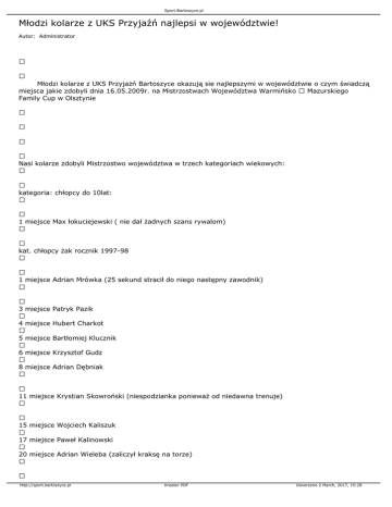 miejsca jakie zdobyli dnia 16.05.2009r. na Mistrzostwach Województwa Warmińsko Mazurskiego