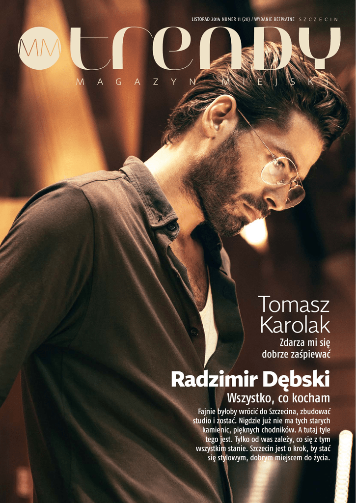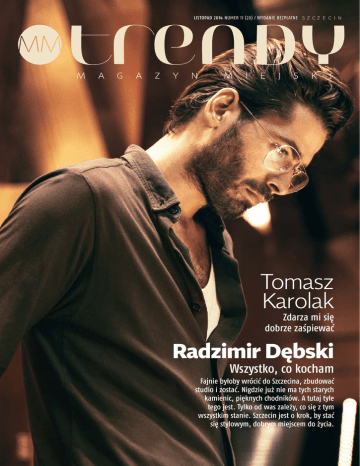 LISTOPAD 2014 NUMER 11 (20) / WYDANIE BEZPŁATNE Tomasz Karolak Zdarza mi się dobrze zaśpiewać Radzimir Dębski Wszystko, co kocham Fajnie byłoby wrócić do Szczecina, zbudować studio i zostać. Nigdzie już nie ma tych starych kamienic, pięknych chodników. A tutaj tyle tego jest. Tylko od was zależy, co się z tym wszystkim stanie. Szczecin jest o krok, by stać się stylowym, dobrym miejscem do życia. 40 Magiczny świat makijażu Prace Moniki Zbyszewskiej 40 / Styl # 22 Moda Grecka jesień - kolekcja Michała Marczewskiego 30 / Wnętrza # 26 Rozmowa miesiąca Tomasz Karolak o „Pączkach w tłuszczu” # 30 Wnętrza Wygoda w klasycznym stylu # 38 Podróże Zobacz Rzym i nie umieraj! # 40 Styl Magiczny świat makijażu # 42 Styl życia Czary z mleka na kawie Spis treści 11/ 2014 # 06 Newsroom # 44 Zdrowie Design, moda, wydarzenia, kultura Newsy i porady # 10 Felieton # 48 Kultura Paweł Krzych: Smaczny Szczecin na czterech kółkach Na co wybrać się w listopadzie Bilal: koncert jesieni! # 12 Temat z okładki # 54 Rozmowa Radzimir Dębski Co słychać u Celiny Skrobisz # 20 Showroom # 55 Trendy towarzyskie Moda na jesień Kto, z kim, gdzie, kiedy i dlaczego #3 MAGAZYN MIEJSKI | NUMER 11/2014 Jarosław Jaz / Redaktor naczelny Podoba mi się wizja Radzimira Dębskiego, w jakim kierunku mógłby ewoluować Szczecin- w stronę stylowego, dynamicznego miejsca spotkań, pełnego loftów, parków i kipiących od niestandardowych pomysłów ludzi, którzy jeszcze na dodatek mają gdzie je realizować. Brzmi tak dobrze, że chciałbym znaleźć się w takim miejscu nie robiąc kroku poza granice miasta. Na razie, by uszczknąć tego rodzaju atmosfery pozostaje nieodległy Berlin, ale klimat wciąż zmienia się na lepsze. Ostatnim tego przykładem jest wydarzenie w (na razie) nieznanej szeroko OFF Marinie, gdzie odbył się dzień szczecińskiego designu. Mnóstwo ludzi przyszło oglądać dokonania innych ludzi, których doskonałe często prace zebrane zostały na terenie zabytkowej fabryki mebli, dziś pełnej artystycznych pracowni i genialnych konceptów. Wtedy przypomniałem sobie o jakim mieście powiedział nam w rozmowie Radzimir Dębski i pomyślałem: bingo! To się właśnie teraz u nas dzieje. Poza tym w tym numerze trochę podróżujemy. Z projektantem Michałem Marczewskim byliśmy w Grecji, gdzie modelki prezentują jego suknie z ostatniej kolekcji. Z Kamilem Robakiem, który wygrał nasz włoski konkurs, byliśmy w Rzymie, słuchaliśmy jazzu i odwiedzaliśmy miejsca znane z najlepszych filmów Felliniego. Artystka Monika Zbyszewska opowiedziała nam o swoich pracach z makijażem, a aktor Tomasz Karolak o życiu, piciu, teatrze i graniu na scenie. Na sam koniec jeszcze małe zaproszenie na koncert wyjątkowego artysty, który pojawi się w Szczecinie. Bilal zaśpiewa 6 listopada w klubie Lulu. Takiego soulu jeszcze u nas nikt nie grał. Warto tam być. Tymczasem miłej lektury. Redakcja/ OKŁADKA: Na zdjęciu Radzimir Dębski Foto: Tomek Mąkolski / MAKATA Redakcja: Nowy Rynek 3, 71-875 Szczecin tel. 91 48 13 341; fax 91 48 13 342 e-mail: [email protected] www.mmszczecin.pl/trendy Redaktor naczelny: Jarosław Jaz Product manager: Ewa Żelazko Promocja i marketing: Magdalena Sosin Redakcja: Maciej Pieczyński, Paulina Targaszewska, Bogna Skarul, Małgorzata Klimczak, Tomasz Kuczyński, Anna Folkman / Korekta: Beata Pikutowska Dział foto: Sebastian Wołosz, Andrzej Szkocki Skład magazynu: Ewa Kaziszko / Re’FORM Studio Dystrybucja: Piotr Grudziecki / Druk: COMgraph Sp. z o.o. Dyrektor Zarządzający: Piotr Grabowski Reklama: tel. 500 324 240, fax 91 48 13 360, [email protected] Wydawnictwo: Media Regionalne sp. z o.o. ul. Domaniewska 45, 02-672 Warszawa Prezes: Dariusz Świąder MAGAZYN MIEJSKI | NUMER 11/2014 #4 Dołącz do nas na www.facebook.com/ MagazynMMTrendy Redakcja nie ponosi odpowiedzialności za treść ogłoszeń. Materiałów, które nie zostały zamówione redakcja nie zwraca. Na podstawie art. 25 ust. 1 pkt 1 b ustawy z dnia 4 lutego 1994 r. o prawie autorskim i prawach pokrewnych Media Regionalne sp. z o.o. zastrzegają, że dalsze rozpowszechnianie materiałów opublikowanych w MM Trendy jest zabronione bez zgody Wydawcy. Newsroom Koty i Psy w hołdzie brzmieniu Warszawy Najnowszą propozycją oficyny wydawniczej Pets Recordings, należącej do szczecińskich producentów muzycznych Grzegorza Demiańczuka i Wojciecha Tarańczuka (Catz N Dogz), jest epka będąca hołdem złożonym dwóm kreatywnym, warszawskim podmiotom: U Know Me & Warsoul. - Witamy w Warszawie, mieście kiełkujących możliwości, ciągłych zmian i kulturalnych doznań - piszą wydawcy płyty Grzegorz Demiańczuk i Wojciech Tarańczuk. - Mieście nowej generacji kreatywnych ludzi, żądnych wypełnić pustkę pozostawioną przez ekonomiczną migrację ostatniej dekady. U Know Me to śmiało poszukująca nowych brzmień oficyna muzyczna. W jej katalogu widnieje obecnie ponad 30 wydawnictw, między innymi takich producentów jak: Kixnare, Mr. Krime, Eltron John i Daniel Drumz. Warsoul to prężny zespół aktywistów, artystów i promotorów muzyki założony przez Maceo Wyro. - Nasza płyta to szersze spojrzenie na Warszawę, jako niezgłębione morze talentów i kreatywności - piszą Catz N Dogz. - Uwagę zwraca także kapitalna okładka, dzieło cenionego polskiego twórcy grafiki - jednocześnie założyciela marki Turbokolor - Swanskiego. Na płycie znalazły się produkcje: Teielte, Sonar Soul, Envee’ego, Archeo i Innocent Sorcerers. (red) Foto: Sebastian Wołosz Foto: Pets Recordings # Szczecinem zawładnęły kobiety Wszystko za sprawą kolejnej edycji festiwalu PROGRESSteron. Imprezę regularnie organizuje Stowarzyszenie Kobiety Dla Szczecina i Regionu. - W ramach Festiwalu PROGRESSteron proponujemy warsztaty rozwojowe z dziedzin takich jak psychoedukacja, aktywność zawodowa, praca z ciałem, taniec, twórczość, wychowanie, zdrowie czy wizerunek. Festiwal stanowi 