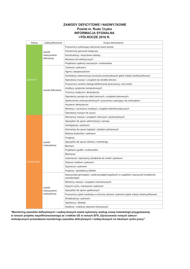 *Monitoring zawodów deficytowych i nadwy'kowych zosta/ wykonany wed/ug nowej metodologii przygotowanej