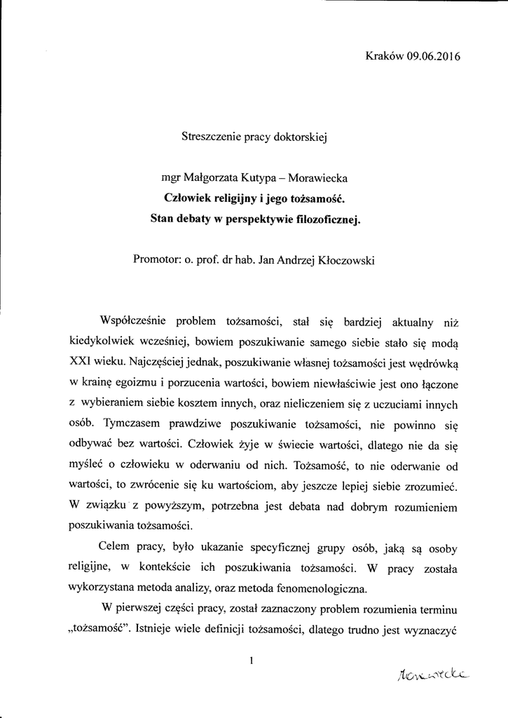 Promotcr: o. prof. dr hab. JanAndrzej Kłoczowski