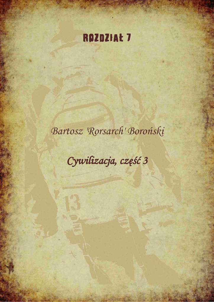ROZDZIAŁ 7 Bartosz 'Rorsarch' Boroński Cywilizacja, część 3 — Co było dalej? — spytał Rorsarch. — Nie mam pojęcia, szukam go, ale nikt nie chce mi wierzyć w tę historię z robotami. – odpowiedział mu Franek. — Ja ci wierzę. Nie pytaj, dlaczego. — odparł Rorsarch Karawanę zatrzymał solidny mur, najeżony strażnikami. Kiedy zobaczyli, że to karawana, otworzyli bramę i wpuścili ich do osady. Ograniczona murem, Łódź była małą osadą, która normalnie zostałaby opuszczona, gdyby nie fakt, że mieli sprawne zakłady chemiczne, w których produkowano składniki do wytwarzania naboi, tak poszukiwane przez Radom po uruchomieniu fabryczki amunicji. Okolica była uważana za groźną, działał tu gang najeźdźców, Dzikich Kobr. Bezwzględni, próbowali wciąż zająć osadę i przejąć zakłady, aby móc potem sprzedawać te surowce za o wiele wyższe ceny. Radomscy Strażnicy, którzy przybyli z karawaną, mieli zostać tutaj i wzmocnić obronę osady, tak ważnej dla ich miasta. Sama Łódź nie była duża, kilkanaście chat, zbrojownia, zakłady chemiczne, koszary i mały sklep połączony z barem. Rorsarch skierował tam swoje pierwsze kroki i kiedy zamówił alkohol spotkał się z pewnym problemem. — Poproszę setkę wódki. – zaczął. — Przyjezdny? – spytał barman. — Tak, zostanę tu najprawdopodobniej jakiś czas. — Wiedz, że u nas wszystko drogie, alkohol jest sprowadzany z Radomia, w ramach wymiany za surowce, amunicja tak samo. Więc to będzie dwanaście żetonów. Rorsarch z ciężkim sercem wyjął garść srebrnych krążków i położył na ladzie. Zabrał te ponadmiarowe i wypił napój, który był wódką Kamila. Ceny były tu zabójcze, przekonał się o tym, gdy zapoznał się z ofertą sklepu. Poszedł do koszar, chcąc się zaciągnąć do jakiejś pracy, bądź do obrony miasta, byleby dostał miejsce do spania i jedzenie, bo na swoich zasobach pieniężnych nie przetrwałby długo, gdyż większość majątku zostawił w swoim pokoju. Do tego dochodził Komediant, który też musiał jeść. Wszedł do koszar i pogadał z dowódcą. — Szukam jakiejkolwiek pracy, macie coś? — Nieźle uzbrojony jesteś, więc możesz spokojnie iść na mury i rozwalać tych pierdolonych najeźdźców. Jeśli nie chce ci się tego robić, to rusz dupsko na Pustkowia i znajdź ich kryjówkę, bazę, cokolwiek gdzie możemy się udać i ich rozpierdolić. — Obie opcje są ciekawe, jednak druga wydaje mi się lepsza dla mnie. Zrobię to w zamian za łóżko i jedzenie dla mnie i psa. — Pies? Nie widziałem żadnego od dawna, ale skoro go masz, to dobra. Ale jak będziesz się opierdalał, to przysięgam, że oddasz nam wszystko, co wydamy na twoje utrzymanie. — Spokojnie, zaczynam od zaraz, kilka dni posiedzę na murach i zobaczę skąd przychodzą. — Rób, co chcesz, bylebyś ich eliminował i znalazł ich kryjówkę. Masz tu, — podał mu emblemat w kształcie pistoletu. – to pokaże, że jesteś z naszych sił zbrojnych, więc będziesz mógł siedzieć na murach. — To ja już pójdę. – powiedział, wpinając znaczek do swojego płaszcza. Ruszył w stronę murów, na których zajął stanowisko i obserwował okolicę przez lornetkę. Koło wieczora zauważył kilku ludzi, w metalowych pancerzach i hełmach, uzbrojonych w wyrzutnie rakiet. Pokazał to żołnierzom na swoim odcinku. — O kurwa, ja pierdolę, rakieciarze! Alarm kurwa, potrzebujemy snajperów! – zaczął krzyczeć żołnierz. — Spokojnie, jestem snajperem. Strzelać? – spytał Rorsarch. — Wal jak tylko możesz, te ich pierdolone pancerze ciężko przebić. Rorsarch wycelował w głowę jednego z najeźdźców i strzelił. Najeźdźca upadł na ziemię, ale wstał i ruszył dalej, na co jego kompani rozproszyli się i w piątkę, bo tylu naliczył, zbliżali się do miasta. Rorsarch kontynuował ostrzał, zaraz wspomogła go dwójka snajperów. Po pięciu strzałach wyeliminował dopiero jednego, snajperzy również nie próżnowali, ale nie mieli noktowizorów, a zapadający zmrok nie ułatwiał zadania. Nagle usłyszał szum i zobaczył rozbłysk koło jednego z przeciwników. Usłyszał tylko ‘Padnij, kurwa!’ i rozbrzmiała eksplozja gdzieś blisko. Zaczęli strzelać z rakiet. Snajperzy dobili dwóch ludzi, ale pozostała dwójka zaczęła strzelać z wyrzutni w kierunku miasta. Kolejna rakieta trafiła w inne stanowisko strzeleckie, rozrywając na strzępy trójkę tamtejszych ludzi a eksplozja rozrzuciła ich członki po okolicy, czego doświadczył Rorsarch, obrywając czymś, co niegdyś było ludzką ręką. Najprawdopodobniej. Najeźdźcy po oddaniu jeszcze kilku strzałów, demolując mur, zaczęli się wycofywać, co wykorzystał Rorsarch i wraz ze snajperami zastrzelił czwartego. Podczas tego natarcia stracili trójkę ludzi, umocnienia a chaty po tej stronie osady były uszkodzone. Tymczasem na horyzoncie dostrzegł kolejną grupkę ludzi, tym razem ze zwykłą bronią. Przekazał to żołnierzom, którzy ściągnęli wsparcie. Rorsarch wraz ze snajperami rozpoczął eliminację, bardzo trudną, gdyż na takiej odległości noktowizor ledwo co pomagał a najeźdźcy szybko się rozproszyli. Gdy podeszli bliżej, wystrzelono kilka flar, które pozwoliły strzelcom wyborowym na zabicie kilku kolejnych, na co ci odgryźli się ostrzałem z karabinów i kilkoma granatami, z czego jeden wpadł do okopu, w którym ukrywali się żołnierze i rozerwał ich na kawałeczki. Liczebność obsługi ich odcinka właśnie spadła o połowę, najeźdźcy zaczęli ukrywać się za pobliskimi gruzami a kilku weszło do okopu. Wiedząc, że snajperką nic nie zdziała, wyjął pistolet i zaczął ostrzeliwać się zza własnej osłony, planując się przemieścić nieco w głąb osady, aby stamtąd móc ostrzelać ich z karabinu. Ciężki ogień maszynowy szybko ostudził jego zapał, jednak żołnierze nie dawali za wygraną i również strzel