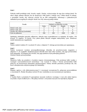 Zad.1 Fabryka mebli produkuje stoły, krzesła, regały i biurka