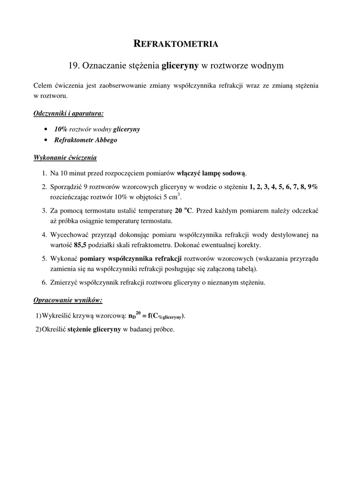 19. Oznaczanie stężenia gliceryny w roztworze wodnym
