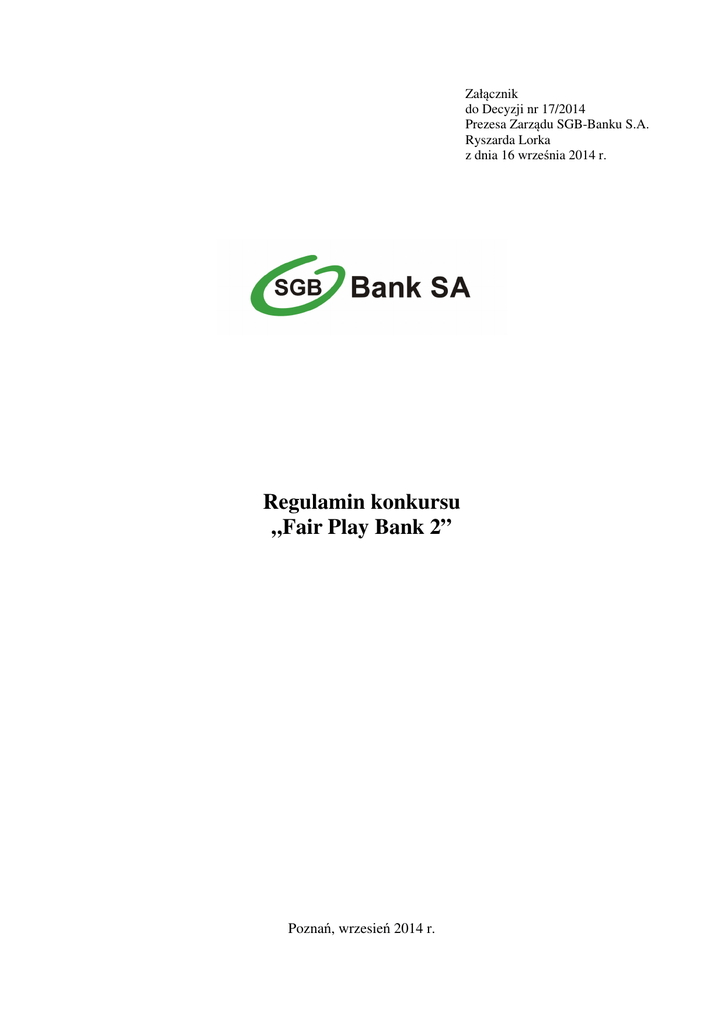 Regulamin konkursu „Fair Play Bank 2”