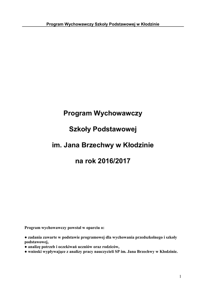 Program Wychowawczy Szkoły Podstawowej w Kłodzinie