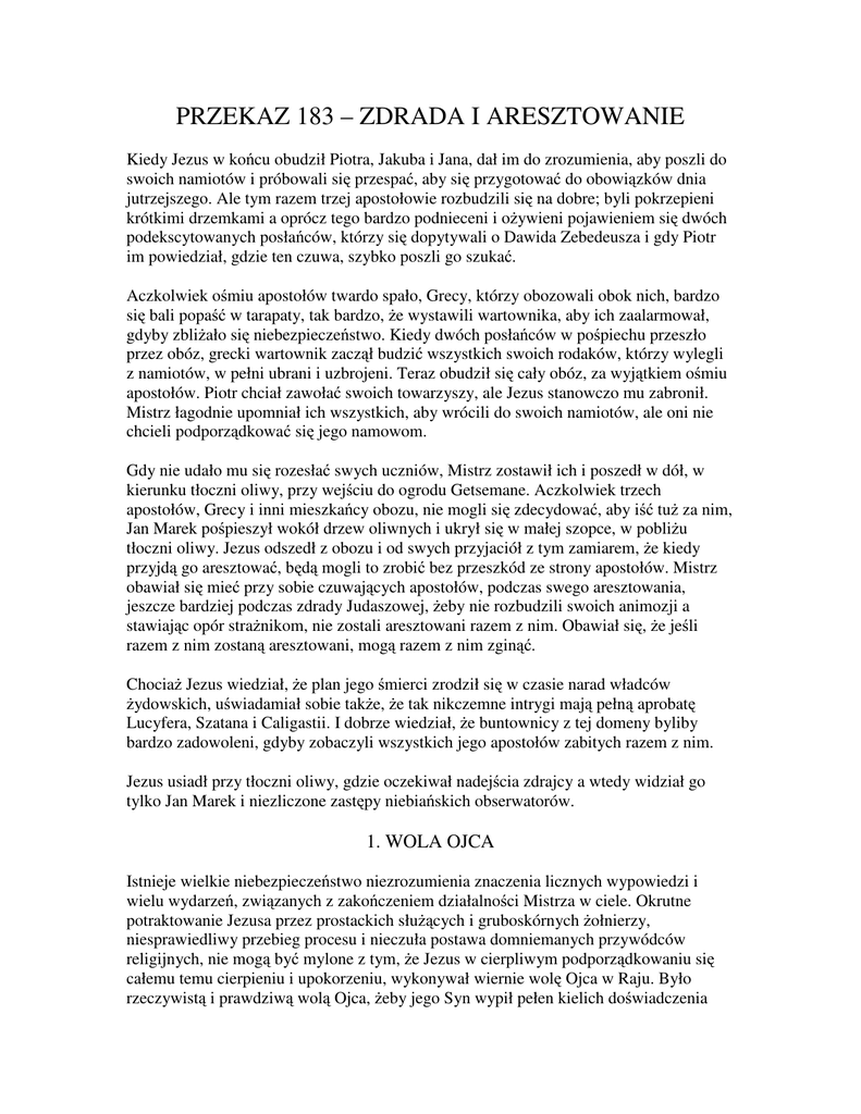 PRZEKAZ 183 Œ ZDRADZENIE I ARESZTOWANIE JEZUSA