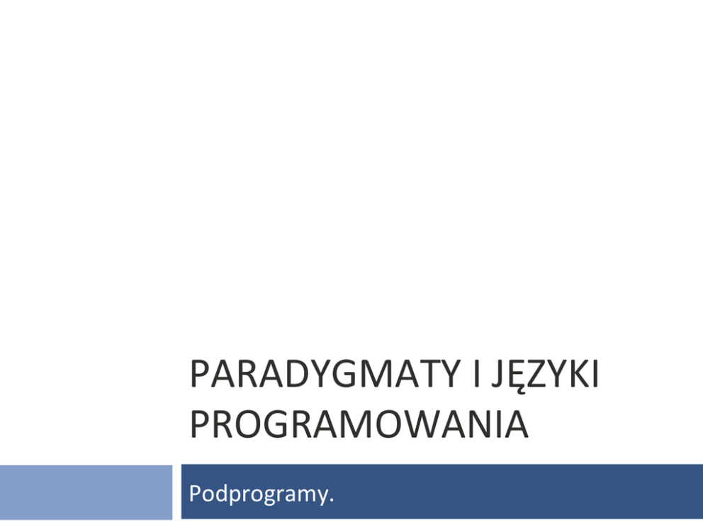 PARADYGMATY I JĘZYKI PROGRAMOWANIA Podprogramy. Treść 2 ¨