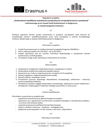 Regulamin projektu - Zespół Szkół Budowlanych w Bydgoszczy