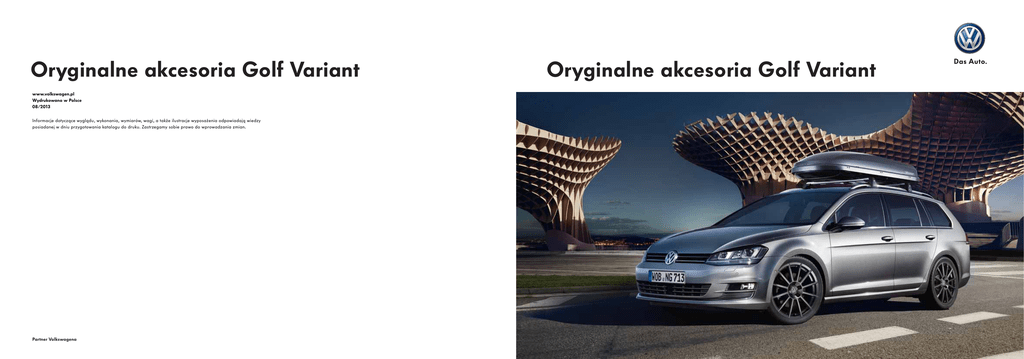 Oryginalne akcesoria Golf Variant www.volkswagen.pl Wydrukowano w Polsce 08/2013 Informacje dotyczące wyglądu, wykonania, wymiarów, wagi, a także ilustracje wyposażenia odpowiadają wiedzy posiadanej w dniu przygotowania katalogu do druku. Zastrzegamy sobie prawo do wprowadzania zmian. Partner Volkswagena Oryginalne akcesoria Golf Variant W C 02 // 03 3 WPROWADZENIE DZENI JAKOŚCI BEZPIECZEŃSTWA VOLKSWAGENA Najważniejsze ważni ażniejsze sze jest st dla nas dążenie dą sne ne e zasad zasady kie e os osiągn nięcia ęcia wymaga wymagają ymag kszeg zeg ego Jasne zasady: wielkie osiągnięcia większego Ka K Or Oryginal inalnych ych akcesor akceso akcesorió w Volkswagen® Każde z Oryginalnych akcesoriów erfekcji. rfekcji. fekcji. Nasze produkty stają st się do perfekcji. kładu adu pracy. pra prac Dlatego tego ego go nasze metody badawcze bad bada szcze zcze nakładu są jeszcze je rozwijane jes zwijane wijane ijane równolegle równole e do mo m elu lu u ssamochodu. jest modelu d i ki doskonałym d k ł coraz lepsze dzięki ardziej d i jb bezw dne, ne, nasze wymagania magan jeszcze jes je bardziej bezwzględne, wyższe, C został stałł jasno j zdefiniowany: d fi i w tko o musi być b Cel wszystko materiałom, najnowszym procesom dziej ziej iej surow suro su a wytyczne testów jeszcze bardziej surowe. perfekcyjnie dopasowane, byśmy ciągle mogli produkcyjnym oraz znakomitemu zaskakiwać jakością wykonania lub, inaczej mówiąc, opracowaniu. by Volkswagen pozostał Volkswagenem. PIKTOGRAMY WŁAŚCIWOŚCI PRODUKTÓW. Produkty z oferty Oryginalnych akcesoriów Volkswagen® mają wiele doskonałych właściwości. Piktogramy zwracają uwagę na najbardziej interesujące cechy. YouTube – oficjalny kanał marki Volkswagen w Polsce, Montaż Przyjazne znajdziesz tu bogatą kolekcję filmów reklamowych bez użycia narzędzi dla środowiska Możliwość stosowania Ograniczające dla wielu modeli zużycie paliwa Wiadomości, opinie, nowości, zdjęcia, filmy wideo i wiele innych. Możliwość Podlegające Dołącz do grona miłośników marki Volkswagen na Facebooku! wyboru koloru recyklingowi oraz przydatnych filmów instruktażowych. www.youtube.com/VolkswagenPolska Bądź z nami w kontakcie i powiedz nam, co lubisz. www.facebook.com/VolkswagenPolska Obciążenie Test Volkswagen max. 50 kg Wejdź na stronę internetową City Crash max. 50 kg www.volkswagen.pl Przedstawione tutaj symbole wskazują na cechy szczególne danego produktu. Dokładne informacje podano na stronie 59. Przedstawione w katalogu samochody zostały częściowo wyposażone w dodatkowe akcesoria. Podobnie jak pewne elementy dekoracyjne, nie są one dostępne wraz z opisanym produktem. Innowacja produktowa Dodatkowe wykończenie felg SPORT I DESIGN 04 FELGI I OPONY 10 KOMUNIKACJA 18 TRANSPORT 24 KOMFORT I OCHRONA 34 LIFESTYLE 50 INFORMACJE 58 04 // 05 SPORT I DESIGN JEST MOCNY. ALE SIĘ TYM NIE CHEŁPI. Z takiej dynamiki i sylwetki można być dumnym. I można ją indywidualnie podkreślić, na przykład akcesoriami. Dodaj do Twojego Golfa Variant dodatkowe elementy stylistyczne i zaakcentuj jego sportowy wygląd. WSKAZÓWKA Ilustracja po prawej: Końcówka rury wydechowej strona 07, Listwa ochronna klapy bagażnika strona 09, Listwa ochronna krawędzi bagażnika ze stali nierdzewnej strona 09, Felgi aluminiowe „Rotary” strona 14 06// 07 SPORT I DESIGN 01 01 // Oryginalne akcesoria Volkswagen® Sportowa gałka dźwigni zmiany biegów Mocny akcent wpływa na stylistykę wnętrza i podkreśla jego elegancję. Ergonomiczna, przypominająca kształtem piłeczkę golfową gałka jest łatwa do zamocowania. Element wyposażenia dostępny w wersji ze skrzynią manualną. Art. nr: 5G0 064 230 02/03 // Oryginalne akcesoria Volkswagen® Końcówka rury wydechowej Podkreśla dynamiczną prezencję Golfa. Lekko ukośne zakończenie i atrakcyjny kształt określają charakter prawdziwego wyczynowca. Dostępne wersje: czarny chrom lub polerowana stal nierdzewna Art. nr: 5C5 071 911 C polerowana stal nierdzewna (ilustracja 02) Art. nr: 5G0 071 911 041 czarny chrom (ilustracja 03) 02 03 04 04 // Oryginalne akcesoria Volkswagen® Nakładki na pedały Wykonane z wysokiej jakości stali szlachetnej. Gumowa powłoka zapewnia dobrą przyczepność. Art. nr: 5G1 064 200 dla wersji z manualną skrzynią biegów Art. nr: 5G1 064 205 dla wersji ze skrzynią DSG 08//09 SPORT I DESIGN 01 01 // Oryginalne akcesoria Volkswagen® Listwa progowa ze stali szlachetnej Indywidualna ochrona Twojego Golfa: listwy progowe ze stali szlachetnej, zdobione napisem „Golf”, nie tylko zapewniają dodatkową ochronę strefy progów, ale i dodają elegancji. 1 zestaw = 4 listwy (na przednie i tylne progi). Art. nr: 5G0 071 303 A 03 02 // Oryginalne akcesoria Volkswagen® Listwa ochronna krawędzi bagażnika w optyce stali szlachetnej Listwa ochronna krawędzi bagażnika w optyce stali szlachetnej nie tylko chroni lakier przed zarysowaniem, ale i atrakcyjnie się prezentuje. Listwę można w łatwy sposób nakleić na górną powierzchnię zderzaka. Art. nr: 5G9 061 195 02 03 // Oryginalne akcesoria Volkswagen® Listwa ochronna klapy bagażnika Atrakcyjna, chromowana listwa przyciąga wzrok i jednocześnie stanowi doskonałą ochronę dolnej krawędzi klapy bagażnika przed uszkodzeniem. Naklejana na dolną krawędź pokrywy bagażnika. Art. nr: 5G9 071 360 10// 11 FELGI I OPONY JESZCZE NIGDY NIE BYŁO TAK ŁATWO POKAZAĆ SWOJE OBLICZE. PO PROSTU GOLF. Golf nie uznaje kompromisów, szczególnie w kwestiach bezpieczeństwa, sportowego charakteru i stylistyki. Ma wyrazistą osobowość, którą odważnie podkreślają wszystkie możliwe elementy – na przykład felgi i opony z oferty Oryginalnych akcesoriów Volkswagen®. Każdy produkt jest bezkompromisowy. Jak Golf. WSKAZÓWKA Ilustracja po lewej: Felga aluminiowa „Blade” strona 16, Nakrętki na wentyle strona 17 12 // 13 FELGI I OPONY CZYSTA PRZYJEMNOŚĆ JAZDY. BEZPIECZNEJ JAZDY. Dobra tr
