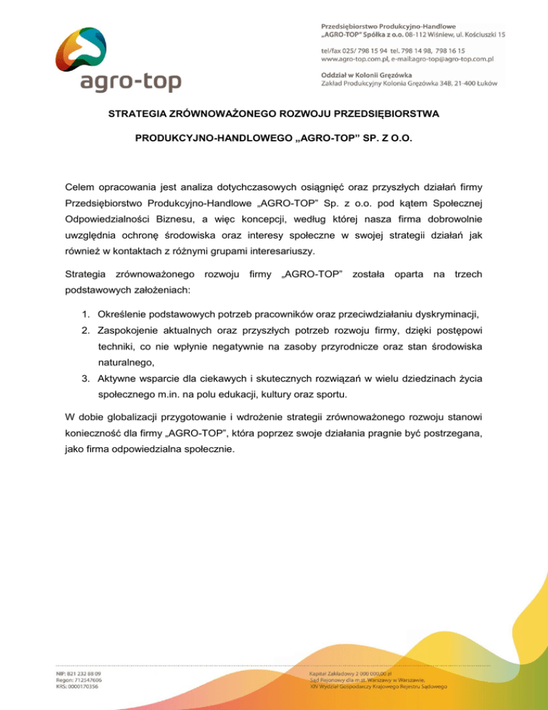 Strategia Zrównoważonego Rozwoju - Agro-Top
