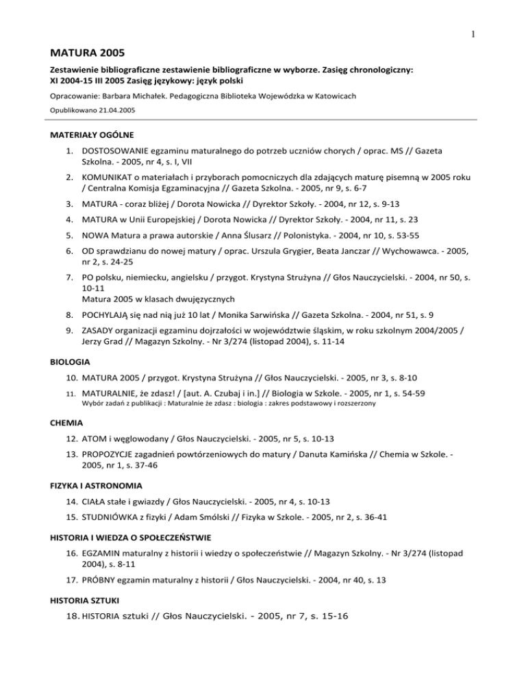 MATURA 2005. Zestawienie bibliograficzne zestawienie