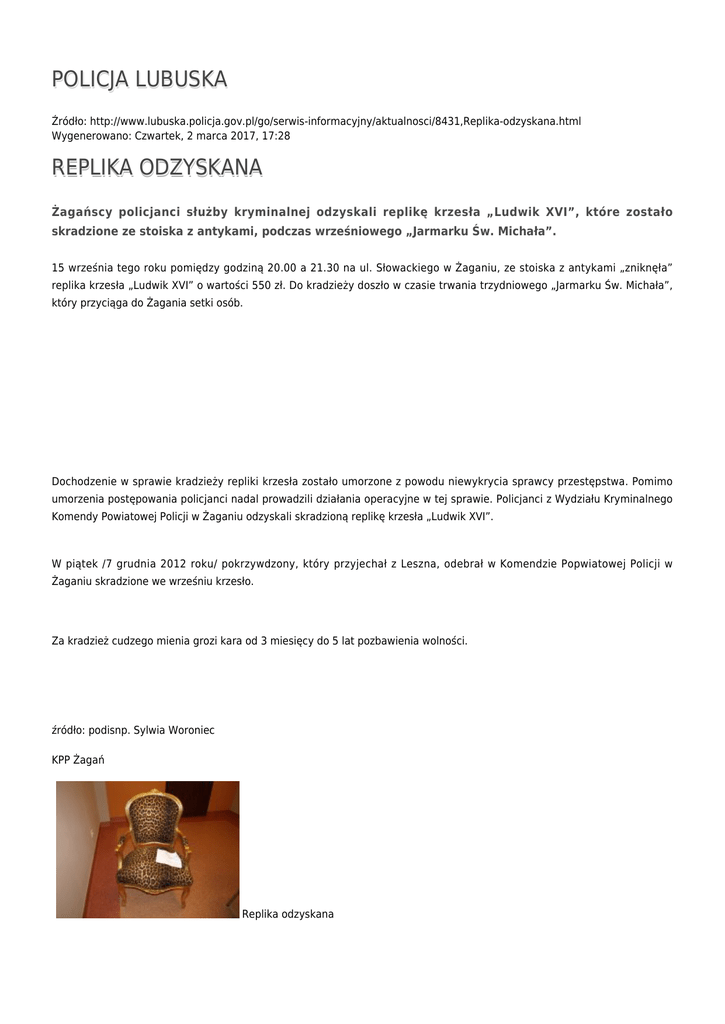 POLICJA LUBUSKA REPLIKA ODZYSKANA