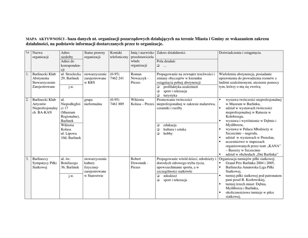 MAPA AKTYWNOŚCI - baza danych nt. organizacji