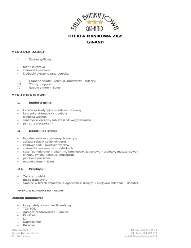 Oferta Piknikówa - Sala Bankietowa Gr-And
