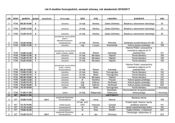 rok II studiów licencjackich, semestr zimowy, rok akademicki 2016