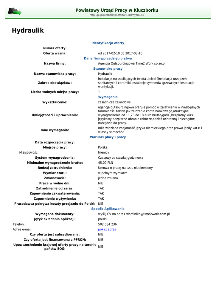 Hydraulik - Powiatowy Urząd Pracy w Kluczborku