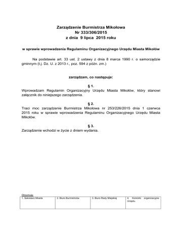 Zarządzenie Burmistrza Mikołowa Nr 333/306/2015 z dnia 9 lipca