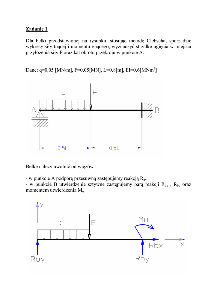 Zadanie 1 Dla belki przedstawionej na rysunku, stosując metodę