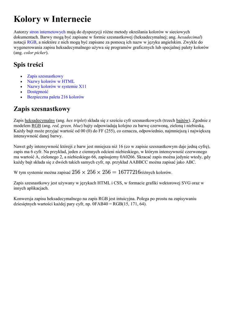 dokumentach. Barwy mogą być zapisane w formie szesnastkowej (heksadecymalnej; ang. hexadecimal)