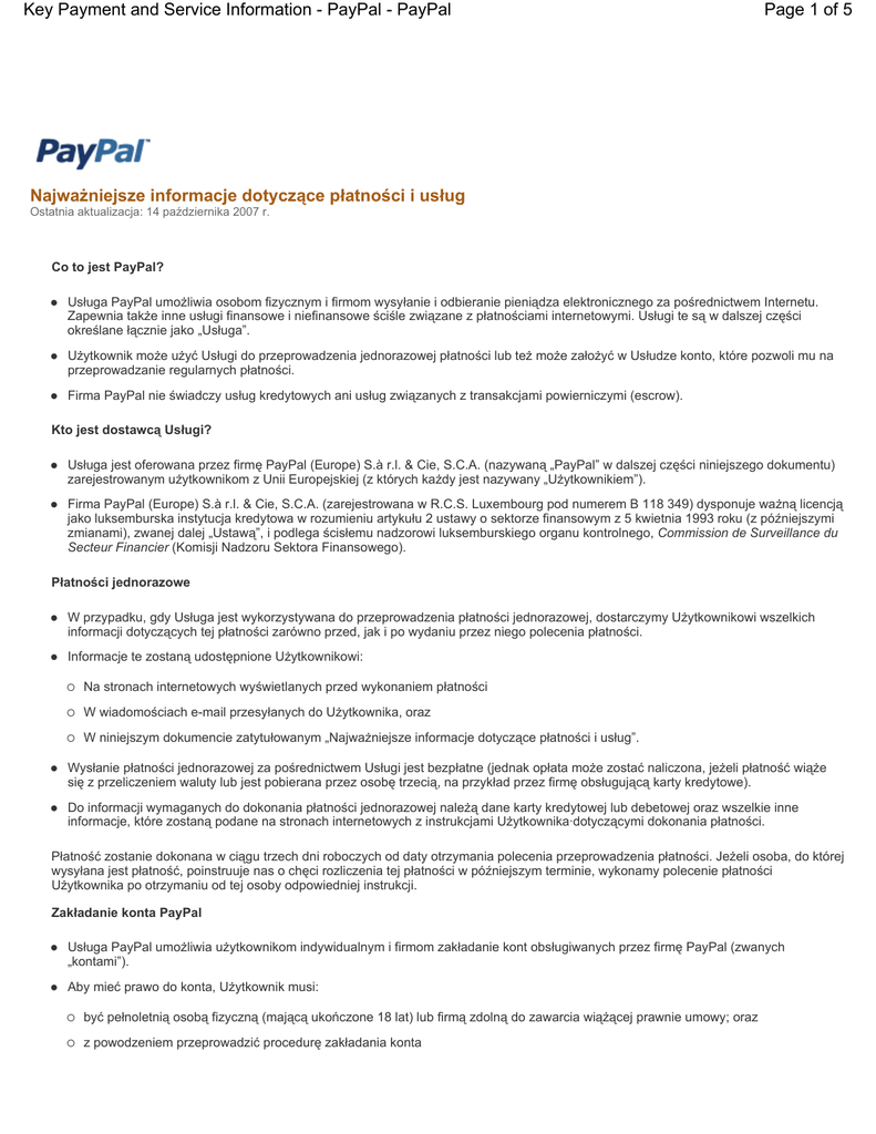 Użytkownikiem, do której można uzyskać dostęp ze stopki dowolnej strony serwisu PayPal. Niniejsze podsumowanie nie stanowi części