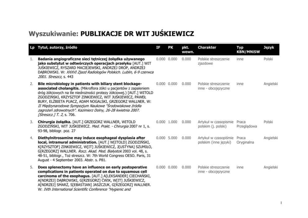 Wyszukiwanie: PUBLIKACJE DR WIT JUŚKIEWICZ
