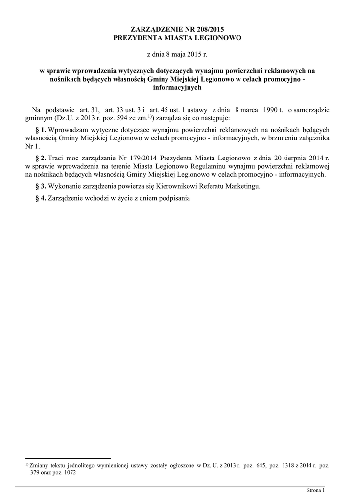 Zarzadzenie Nr 208/2015 z dnia 8 maja 2015 r.