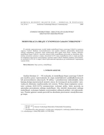 MODYFIKACJA BRĄZU CYNOWEGO CuSn10 CYRKONEM