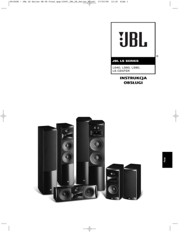 27/03/08 12:18 Side 1 ® JBL LS SERIES LS40, LS60, LS80, LS CENTER INSTRUKCJA OBSŁUGI Polski 0010CSK - JBL LS Series OM PO Final.qxp:33487_JBL_ES_Series_Polski 0010CSK - JBL LS Series OM PO Final.qxp:33487_JBL_ES_Series_Polski 27/03/08 12:18 Side 2 SERIA JBL® LS KINO DOMOWE Od ponad 60 lat JBL wytwarza sprzęt audio dla sal koncertowych, studiów nagraniowych i kin na całym świecie. JBL to oczywisty wybór wiodących artystów i inżynierów dźwięku. Dzięki serii JBL LS innowacyjne technologie, takie jak tweetery z czystego tytanu, falowody Elliptical Oblate Spheroidal™ (EOS) i głośniki tubowe Bi-Radial Horn®, są dostępne także dla ciebie. Baw się dobrze! Aby ustawić kanały przednie, umieść jeden głośnik po lewej, a drugi po prawej stronie telewizora. Głośniki JBL LS są zaprojektowane głównie do współpracy z telewizorami plazmowymi, LCD i DLP, nie powinny być umieszczanie w pobliżu telewizorów CRT (Cathon Ray Tube). Kanały surround – umieść głośniki na stojakach lub półkach po obu stronach słuchacza. Końcowe ustawienie zależy od właściwości akustycznych pokoju, dostępnego miejsca oraz preferencji słuchacza (rysunki 2 i 3). W konfiguracjach 6- i 7-kanałowych należy umieścić kanały tylne za słuchaczem, jak pokazano na rysunkach 2 i 3. Rozpakowywanie Subwoofera Jeśli rozpakowana kolumna okaże się uszkodzona, niezwłocznie skontaktuj się ze sprzedawcą. Kartony po kolumnach przechowuj na wypadek konieczności transportowania ich, na przykład do serwisu. UWAGA: subwoofer aktywny JBL wzmocni i doda realizmu zarówno muzyce, jak i filmom. Skontaktuj się z dealerem JBL, który poleci subwoofer najlepszy dla wybranej przez ciebie konfiguracji. W KOMPLECIE LS60, LS80 Komplet kolców (do montażu w nóżkach) Subwoofer JBL JBL Subwoofer (opcja) (optional) (4) podkładki Ustawienie subwoofera Left Kanał przedniFront lewy NIGDY nie ciągnij głośnika po podłodze, aby go przesunąć, ponieważ może to zniszczyć kolce, nóżki głośnika i/lub jego obudowę. Zawsze podnoś głośnik, by umieścić go w nowej lokalizacji. UWAGA: Kolumny głośnikowe mają wysoko umieszczony środek ciężkości i mogą stać się niestabilne podczas trzęsienia ziemi, a także gdy są popchnięte czy nierówno ustawione. Aby temu zapobiec, można przymocować głośniki do ściany, używając tych samych narzędzi, co w przypadku montażu głośników ściennych. Użytkownik odpowiada za właściwą instalację głośników i odpowiedni dobór narzędzi. Right Kanał przedni Front prawy KanałCenter centralny Channel Channel STEREO Channel Couch Kanapa Zanim zdecydujesz, gdzie umieścić głośniki, przyjrzyj się swojemu pokojowi i pomyśl o ich rozmieszczeniu, biorąc pod uwagę następujące punkty i rysunek 1.: • Dla uzyskania najlepszych rezultatów, umieść głośniki w odległości 1,5 – 2,5 metra od siebie. • Umieść każdy głośnik tak, by tweetery znajdowały się mniej więcej na poziomie ucha słuchacza. • Generalnie bas zwiększa się po przysunięciu głośnika bliżej ściany czy rogu pomieszczenia. • Przeczytaj sekcję „kino domowe” poniżej, jeżeli zamierzasz też używać głośników do odtwarzania filmów. Kanał Leftlewy surround Surround Channel Kanał Left Rear tylny lewy Channel Kanał tylny Center Rear centralny Channel Kanał Rightprawy Rear tylny Channel KanałRight prawy surround Surround Channel Rysunek 2. Ten rysunek pokazuje typowy plan kina domowego. Lewy i prawy kanał tylny przeznaczony jest to systemu 7-kanałowego. Tylny głośnik centralny przeznaczony jest do systemu 6-kanałowego. JBL Subwoofer (optional) (opcja) Kanał Right przedni Front prawy Channel Left Kanał lewy Right prawy Kanał Channel Channel RightKanał Surround prawy surround Channel Center Kanał centralny Channel Kanał Left przedni Front lewy Channel Ka na pa Pozycja słuchacza Listening Position Rysunek 1. Eksperymentuj z rozstawieniem głośników, aby uzyskać najlepszy bas i efekt stereo w swoim pomieszczeniu. Kanał Left lewy Surround surround Channel Kanał Left Rear tylny lewy Channel Kanał Rightprawy Rear tylny Channel Kanał tylny Center Rear centralny Channel Rysunek 3. Ten rysunek pokazuje alternatywną konfigurację, która może się lepiej sprawdzić w niektórych pomieszczeniach. Lewy i prawy kanał tylny przeznaczony jest to systemu 7-kanałowego. Tylny głośnik centralny przeznaczony jest do systemu 6-kanałowego. 2 0010CSK - JBL LS Series OM PO Final.qxp:33487_JBL_ES_Series_Polski 27/03/08 12:18 Side 3 MONTAŻ KOLCÓW BI-WIRING LS60, LS80 LS40, LS60, LS80 Zewnętrzny panel z gniazdami oraz wewnętrzna zwrotnica modeli LS40, LS60, oraz LS80 są tak zaprojektowane, by można było podłączyć oddzielne przewody głośnikowe do sekcji przetwornika niskotonowego oraz średnio/wysokotonowego w zwrotnicy. Takie podłączenie nazywane jest bi-wiring. Bi-wiring poprawia brzmienie i zwiększa elastyczność w doborze wzmacniacza. Cztery metalowe kolce służą do ustawiania głośnika na podłożu dywanowym; Stosowanie ich oddziela głośnik od podłoża, co zapobiega niepożądanemu tłumieniu. zawilgoceniu. Aby zamontować kolce, należy delikatnie ułożyć głośnik na boku ( nie na ściance przedniej ani tylnej) na miękkiej, nie szorstkiej powierzchni i odkręcić gumowane stopki ( przechowywać w miejscu zabezpieczonym). Każdy kolec może być wkręcony w gwintowane gniazdo znajdujące się w każdym rogu. Upewnij się, że wszystkie kolce wkręcone zostały dokładnie, aby zapewnić stabilność. Aby chronić powierzchnie podłóg niedywanowych należy umieścić każdy kolec w metalowym pokrowcu ( dołączony do dostawy). 1. Odkręć terminale i zdejmij poprzeczki je łączące. 2. Wsuń przewód przeznaczony do tweetera do górnej pary terminali i zaciśnij je. 3. Wsuń przewód przeznaczony do niskich częstotliwości do dolnej pary terminali i zaciśnij je. NIGDY nie ciągnij głośnika po podłodze, aby go 