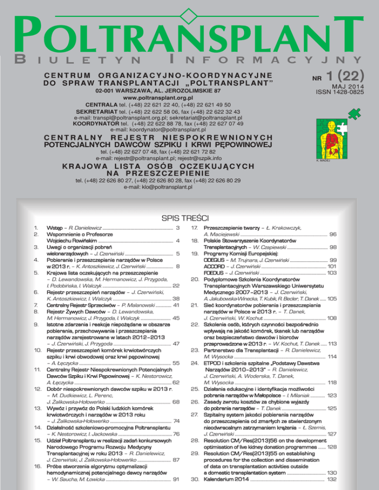 Poltransplant Biuletyn Informacyjny Nr 1 (22), maj 2014